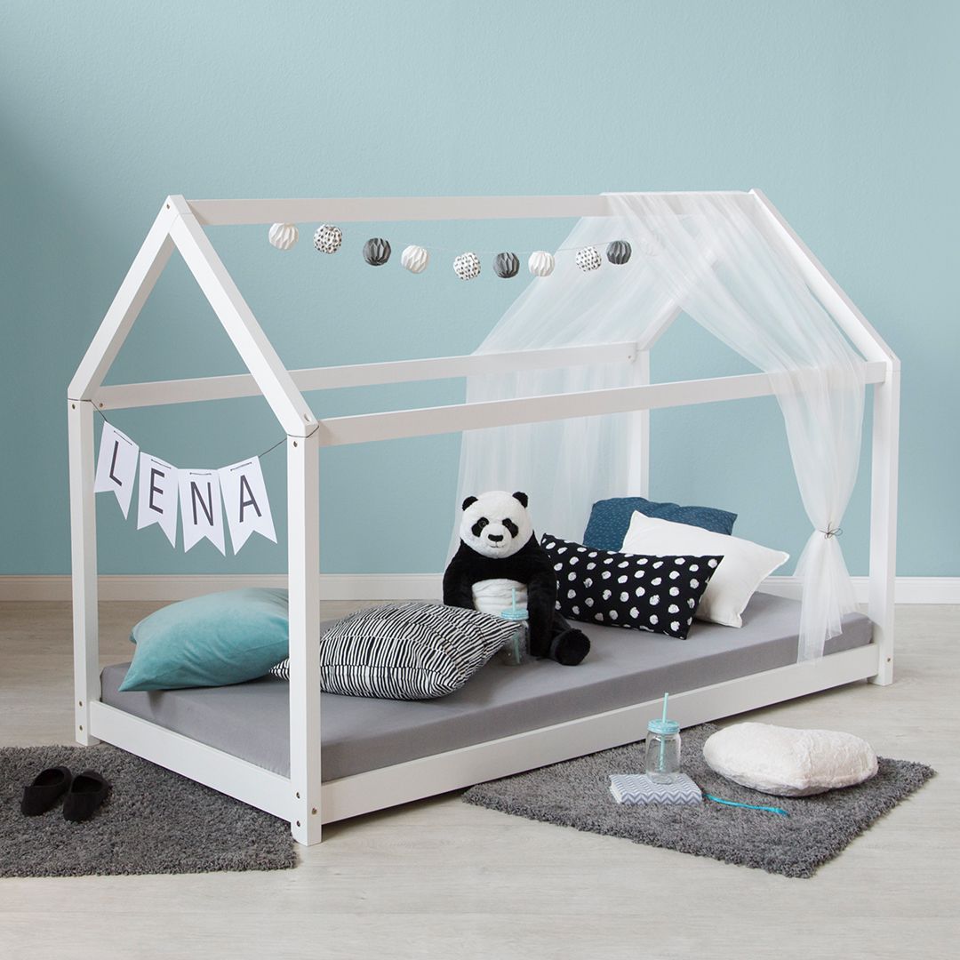 Kinderbett 80x160 cm mit Matratze Hausbett Weiß Bodenbett Montessori Bett Holzbett