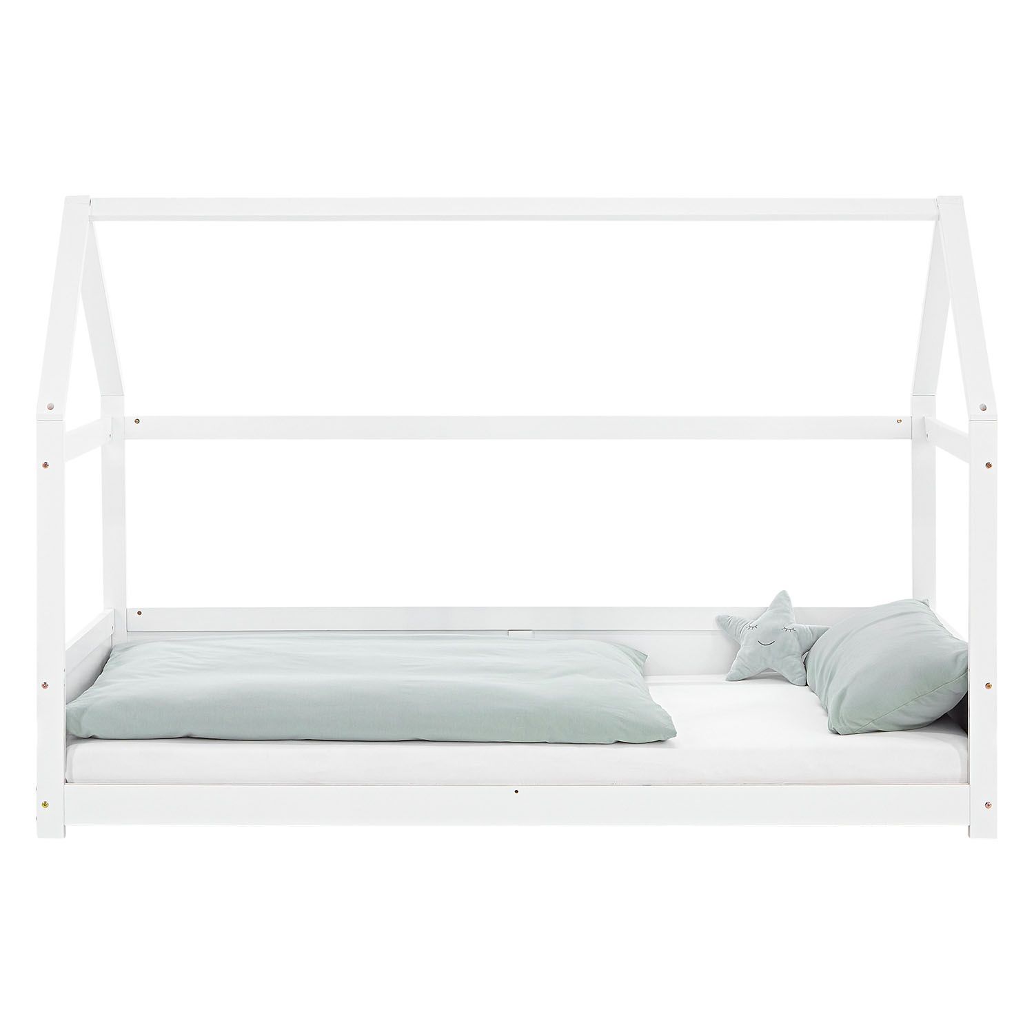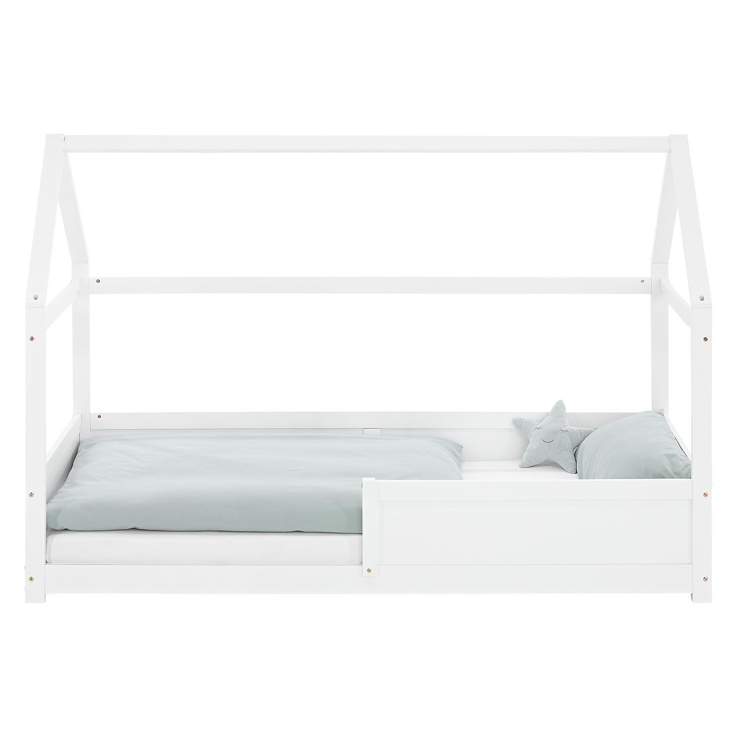Kinderbett 90x200 cm Bodenbett Hausbett Holzbett Rausfallschutz Montessori Bett