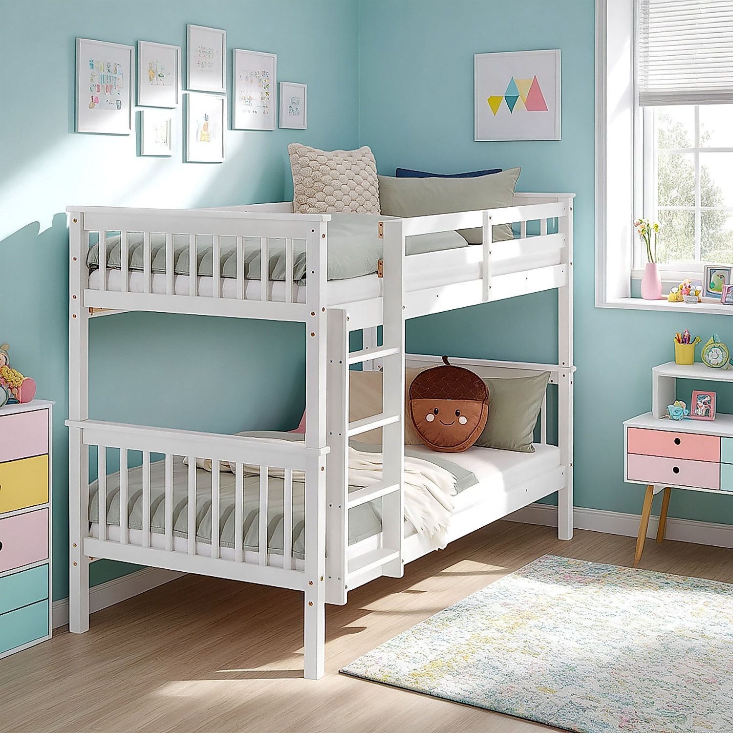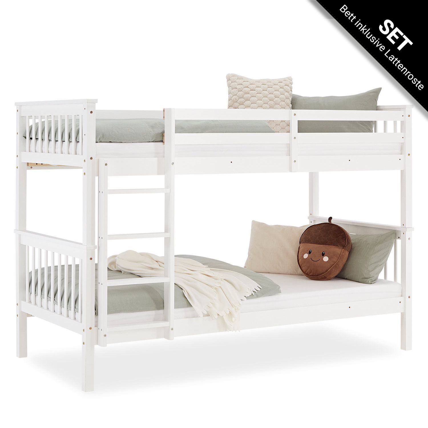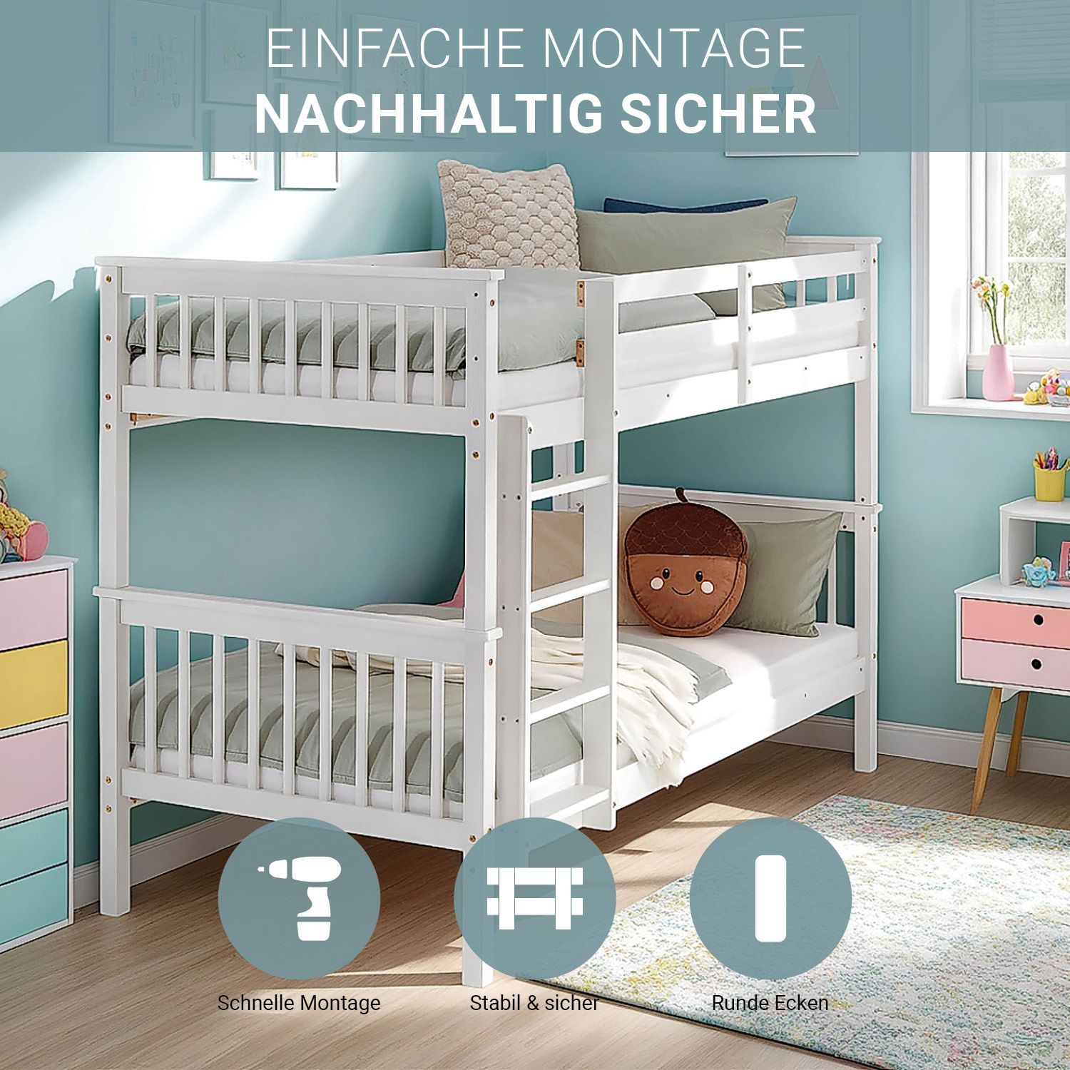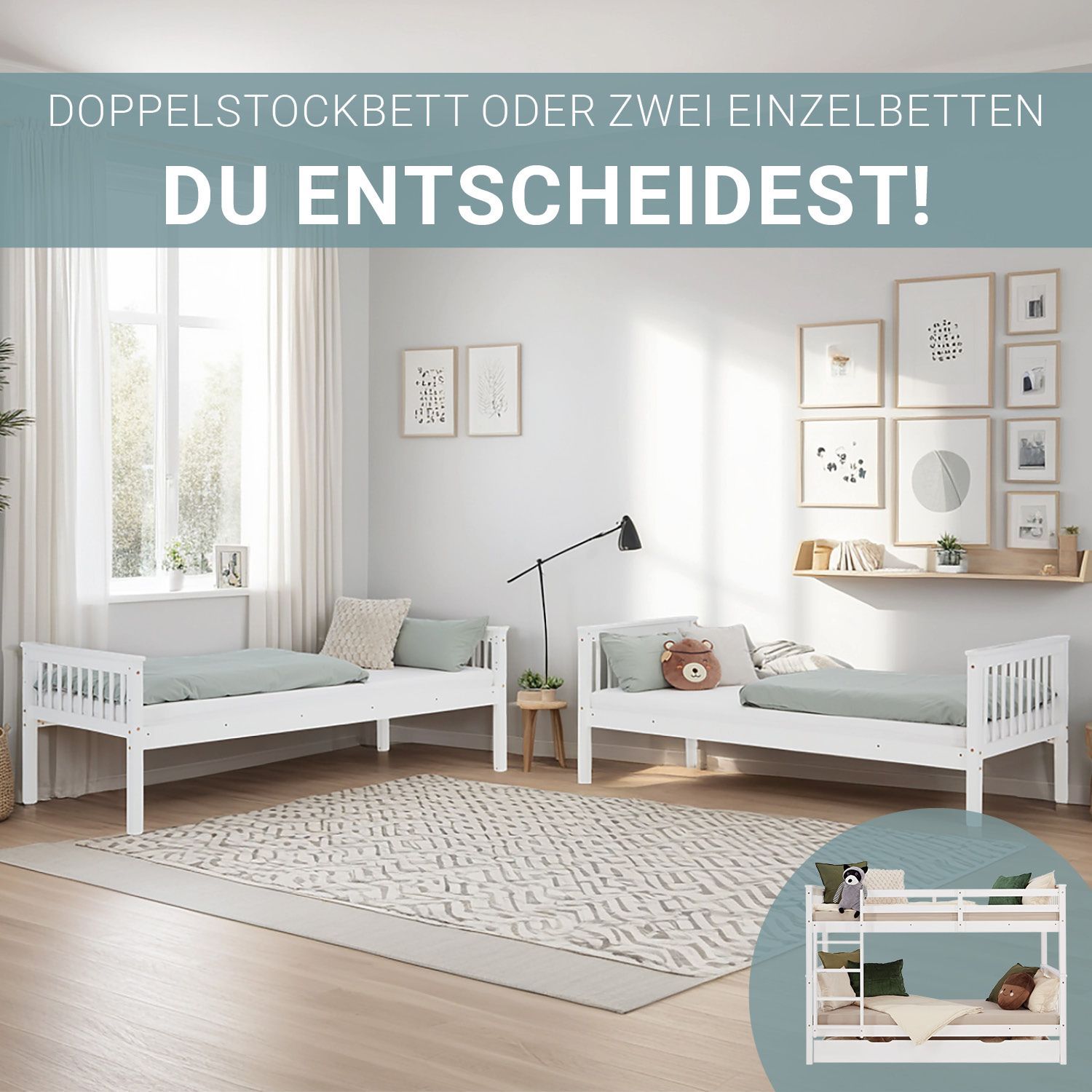 Kinderbett 90x200 Etagenbett Holzbett Weiß Jugendbett Doppelstockbett Rausfallschu
