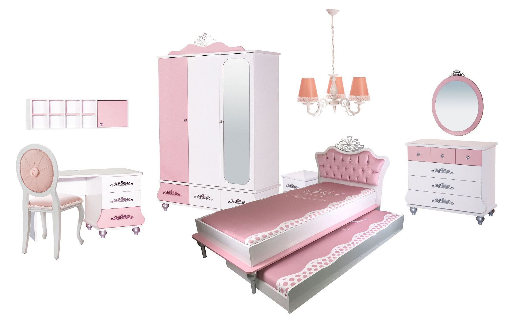 byMM Kinderbett 90x200cm Anastasia V2 rosa mit Gästebett, sofort lieferbar, NEU