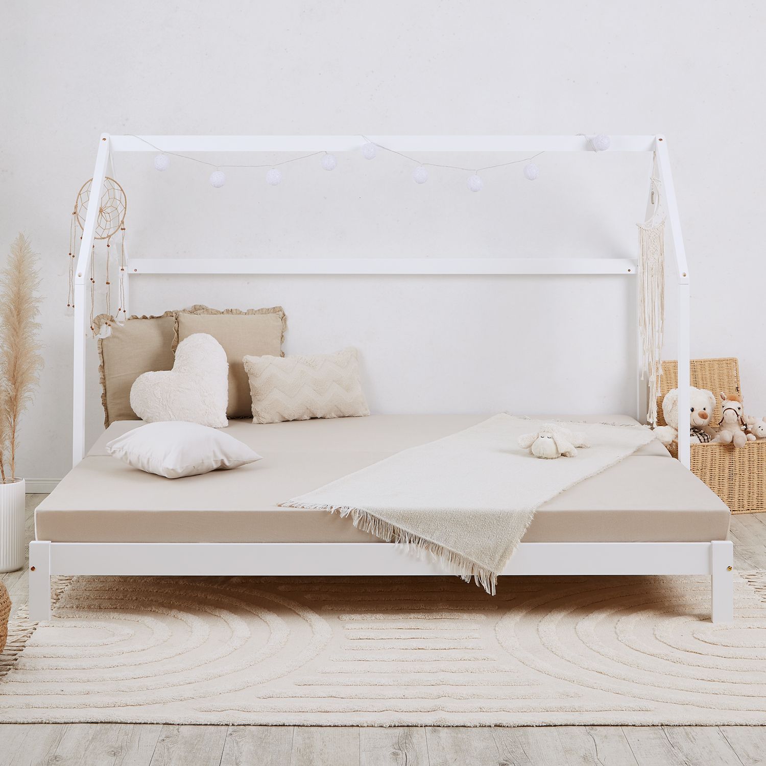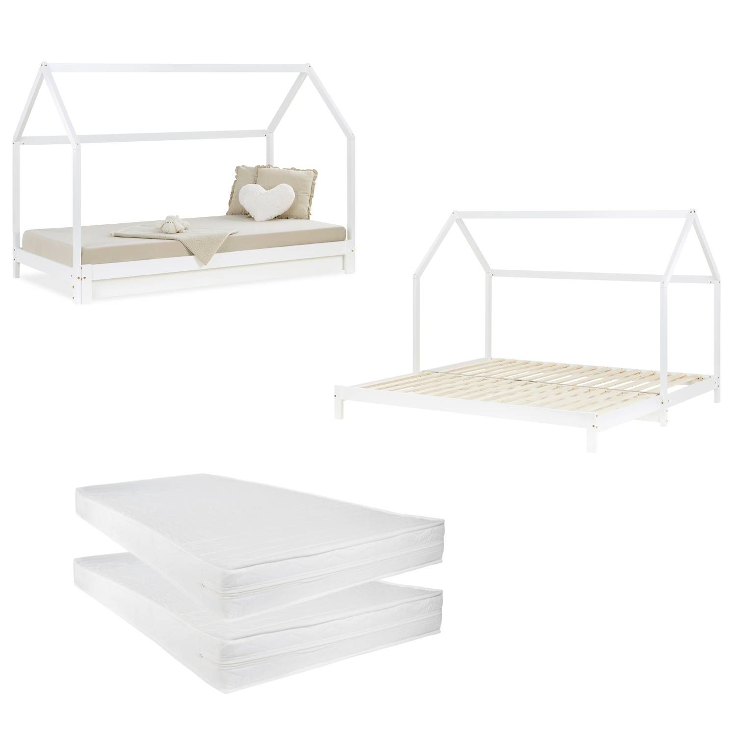 Kinderbett ausziehbar Hausbett 90x200 2 Matratzen Lattenrost Gästebett Ausziehbett