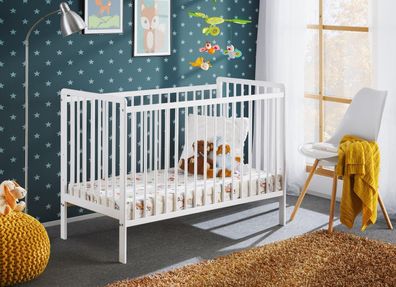 VIPACK Kinderbett Babybett 60x120 Gitterbett verstellbar Weiß lackiert