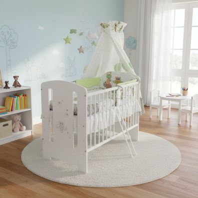 • Babybett Beistellbett Kinderbett 120/60 cm Eule Grün
