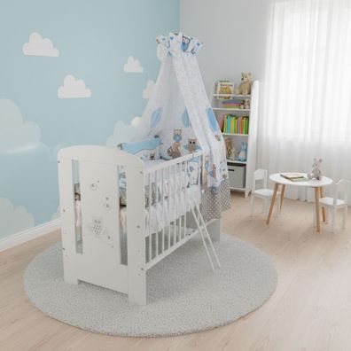 • Babybett Kinderbett Beistellbett 120 x 60 cm + Wickeltisch Eule Blau