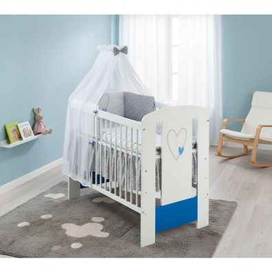 • Babybett Beistellbett Kinderbett 120/60 cm Herz Blau