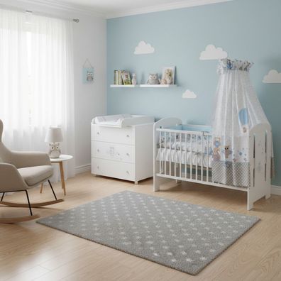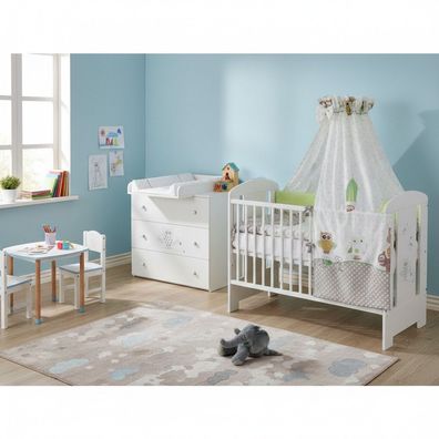 • Set Babybett Kinderbett 60x120 und Wickelkommode Kinderzimmer Babyzimmer Weiß
