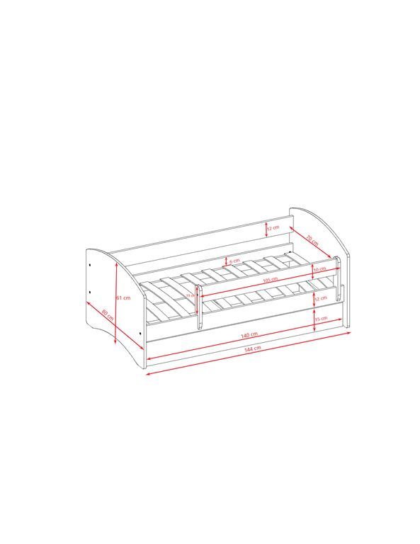 Kinderbett blauer Teddybär Blumen mit Schublade ohne Matratze Rosa 80/61/144