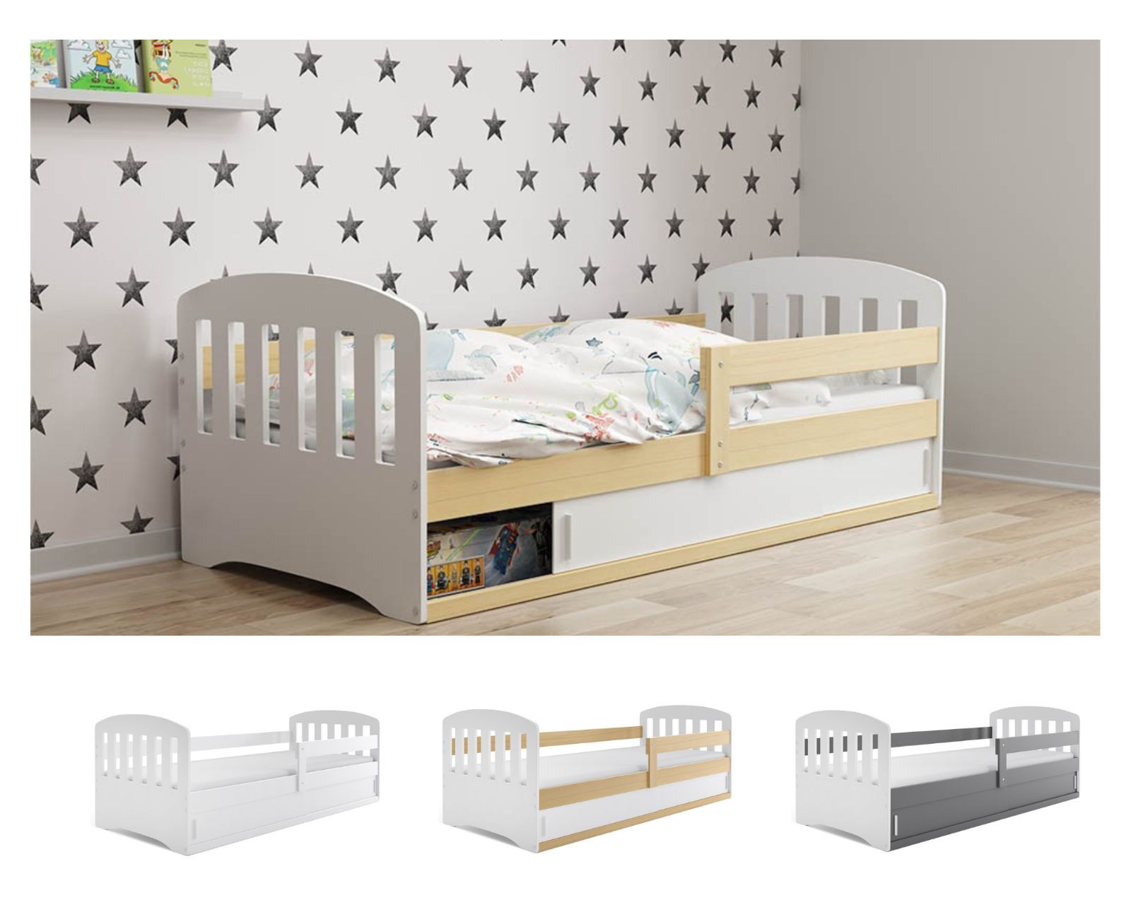 Kinderbett classic mit Matratze und Schublade 190x80 weiß-graphit