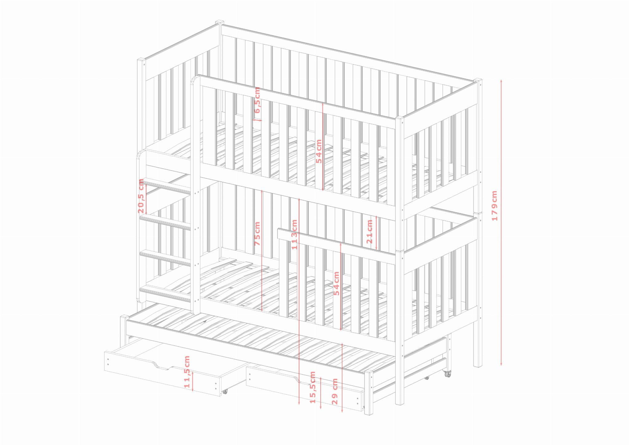 Kinderbett / Etagenbett EMILKA - Weiß / Beige / Grau / Graphit - verschiedene Größen