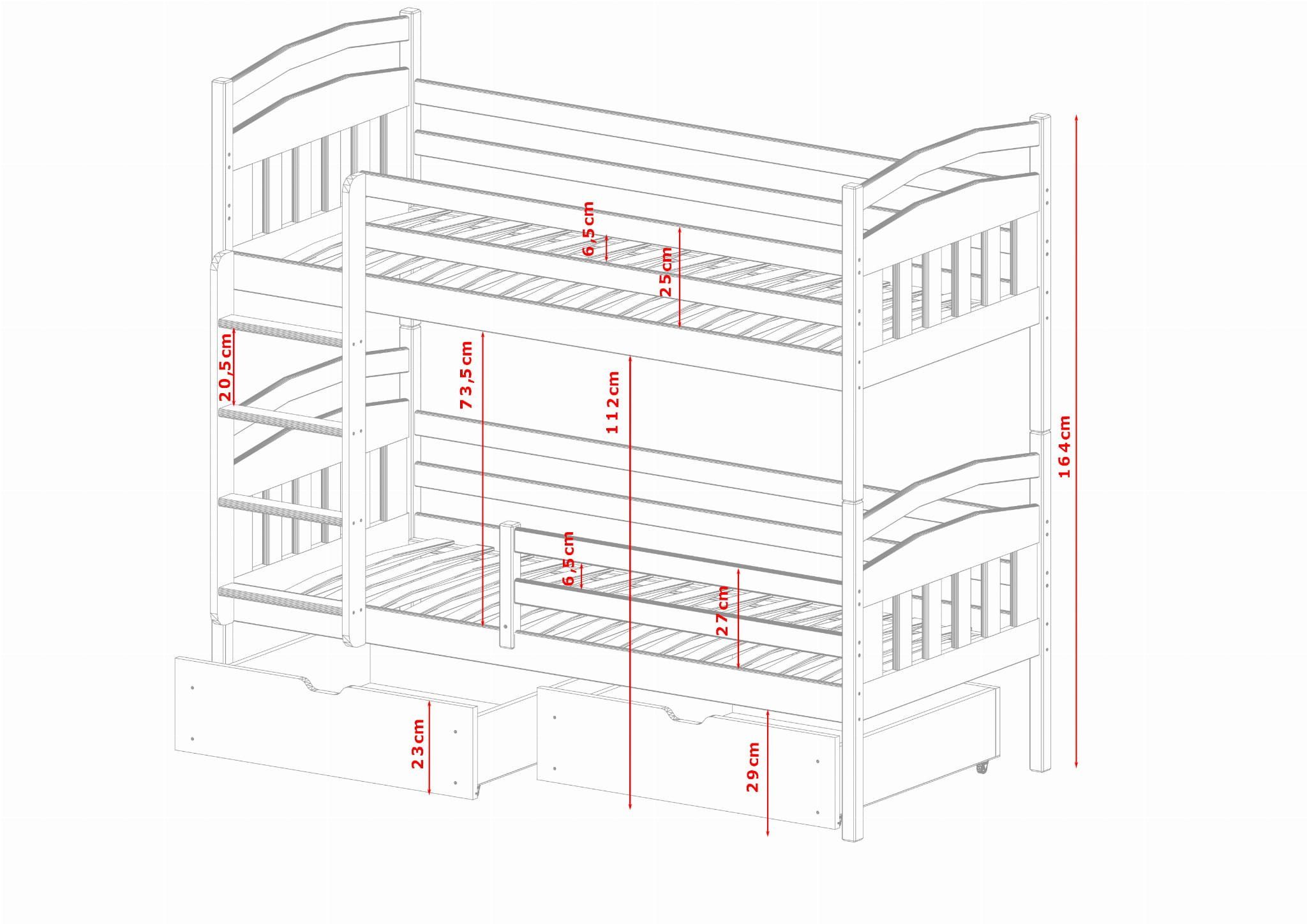 Kinderbett / Etagenbett GABI - Weiß / Beige / Grau / Graphit - verschiedene Größen