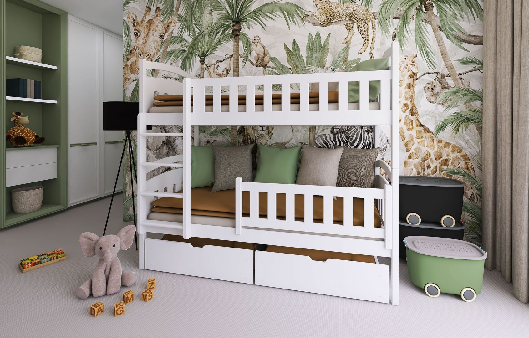 Kinderbett / Etagenbett IGNAS - Weiß / Beige / Grau / Graphit - verschiedene Größen