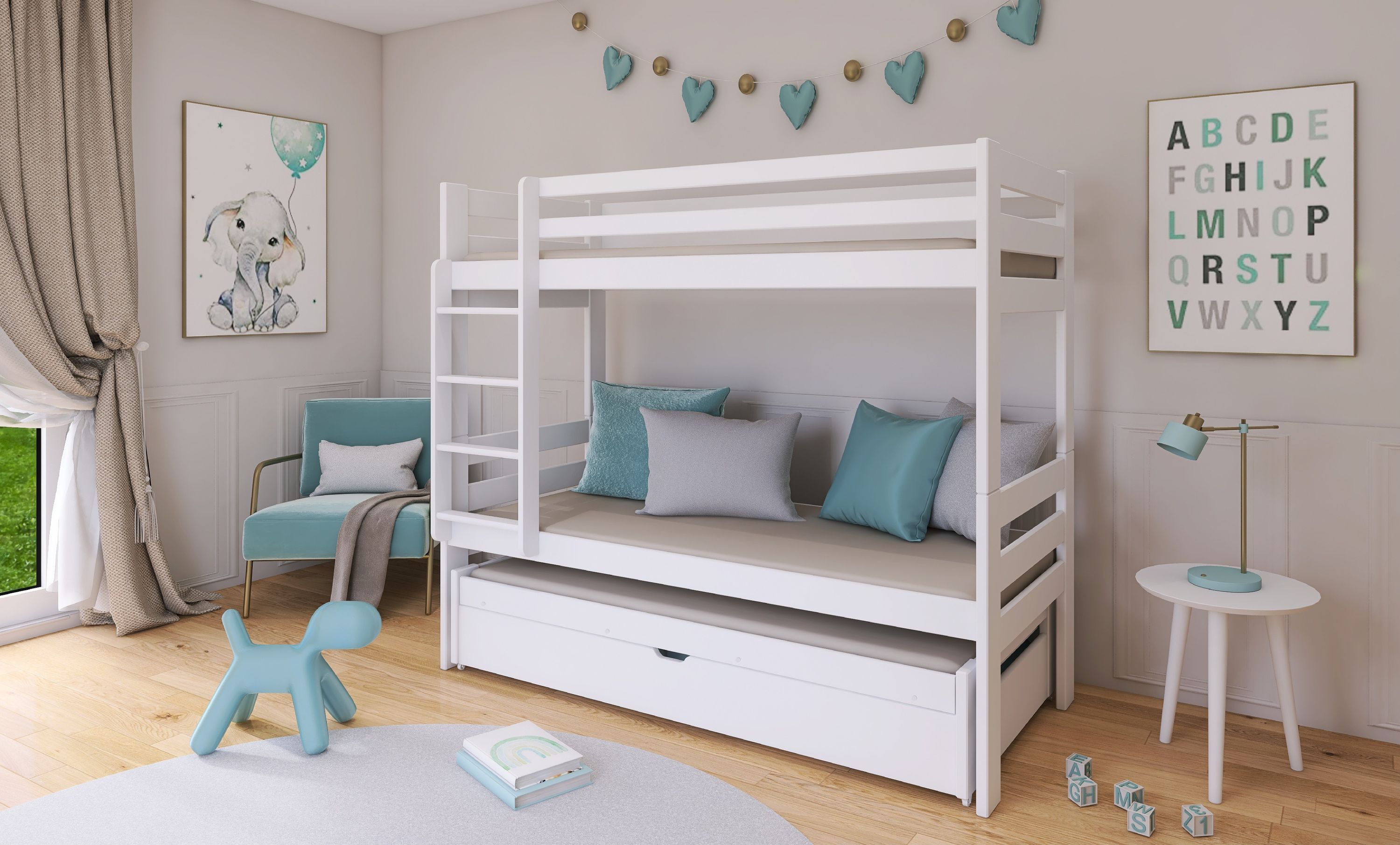 Kinderbett / Etagenbett Lessinew - Weiß / Beige / Grau / Graphit - verschiedene Größe