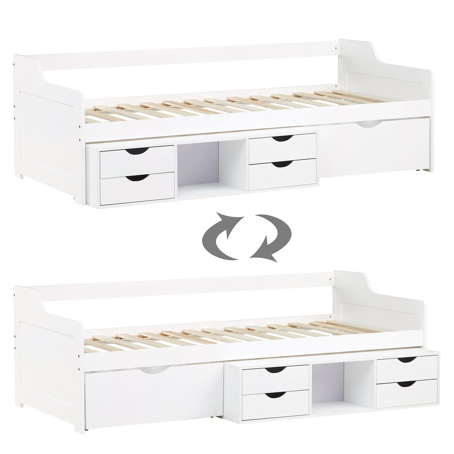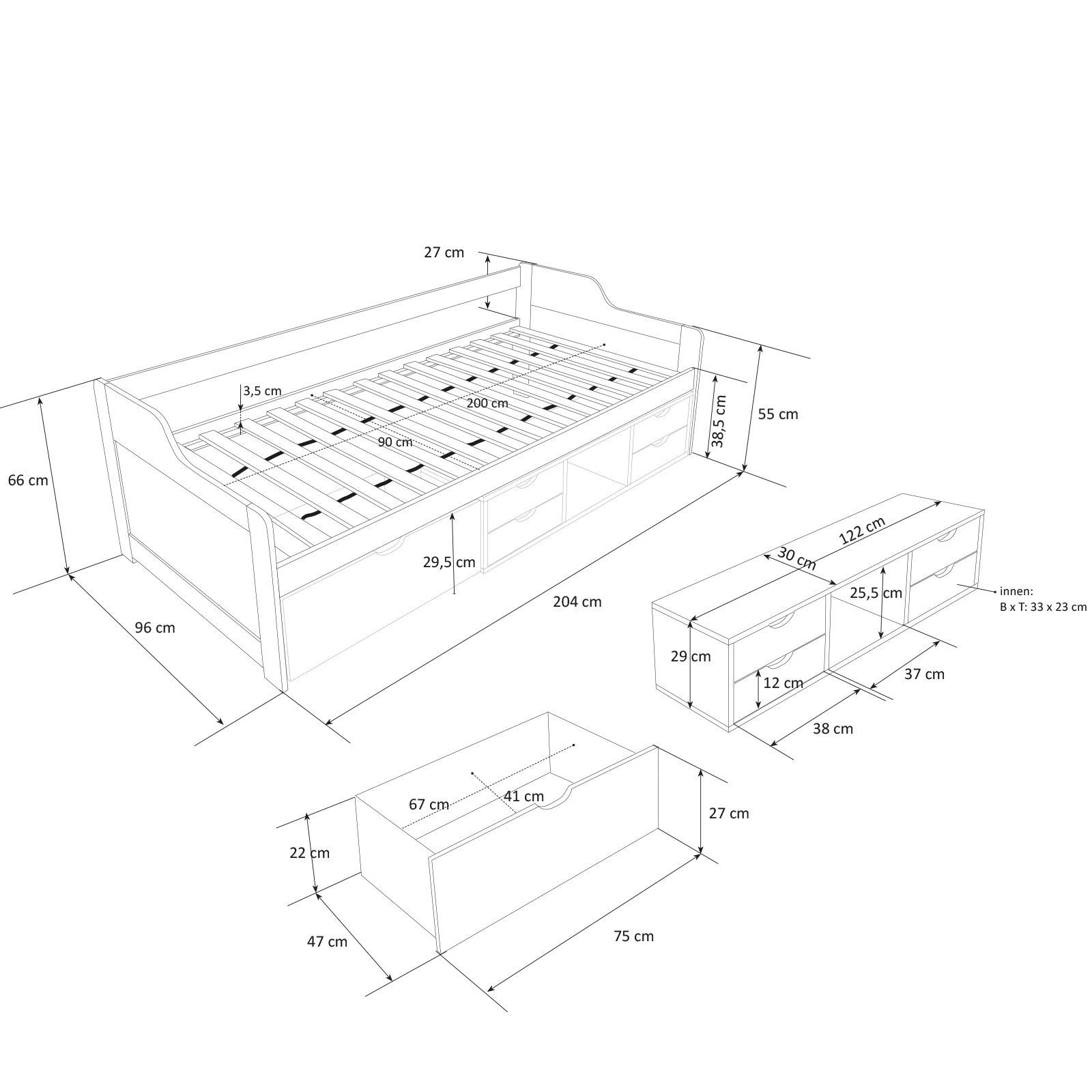 Kinderbett Funktionsbett Jugendbett Kojenbett Einzelbett weiß Schubladen 1422