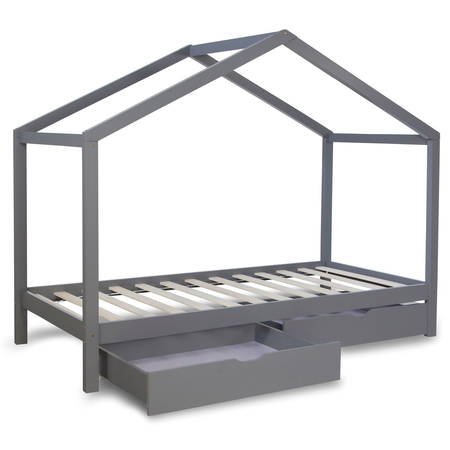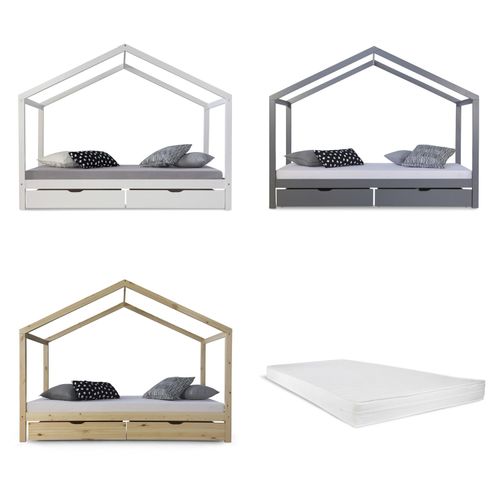 Kinderbett Hausbett 90x200 cm + Matratze Kinderhaus Spielbett Holzbett Bettkasten