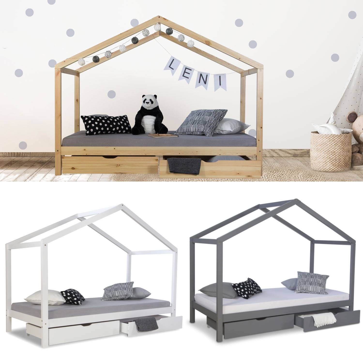 Kinderbett Hausbett 90x200 Kinderhaus Spielbett Holzbett Bettkasten
