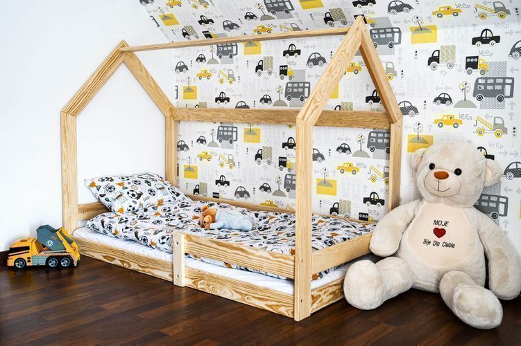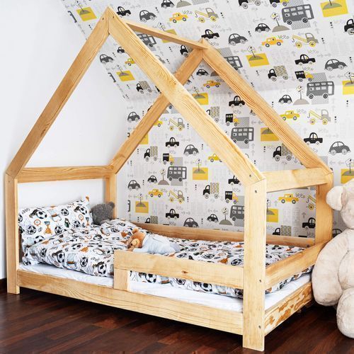 Holzhausbett Schlafbett Spielbett Natur Holzbett Montessori modernes Kinderbett
