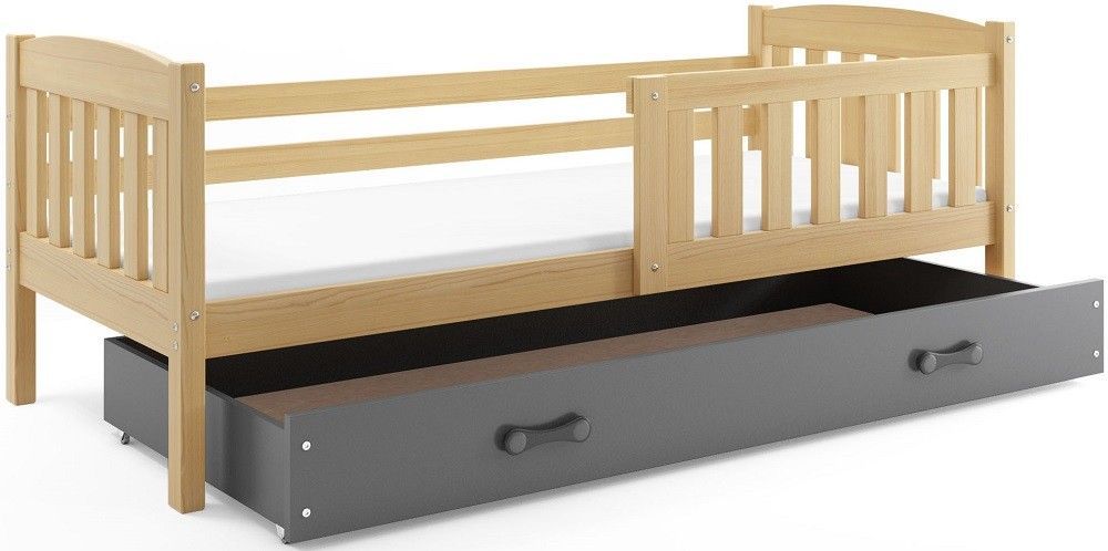Kinderbett QUBA 20 0x90 cm aus Kiefernholz. Mit Lattenroste und Schaumstoffmatratzen mit Höhe von 7cm. Bei den Fragen können Sie eine Anfrage schreiben