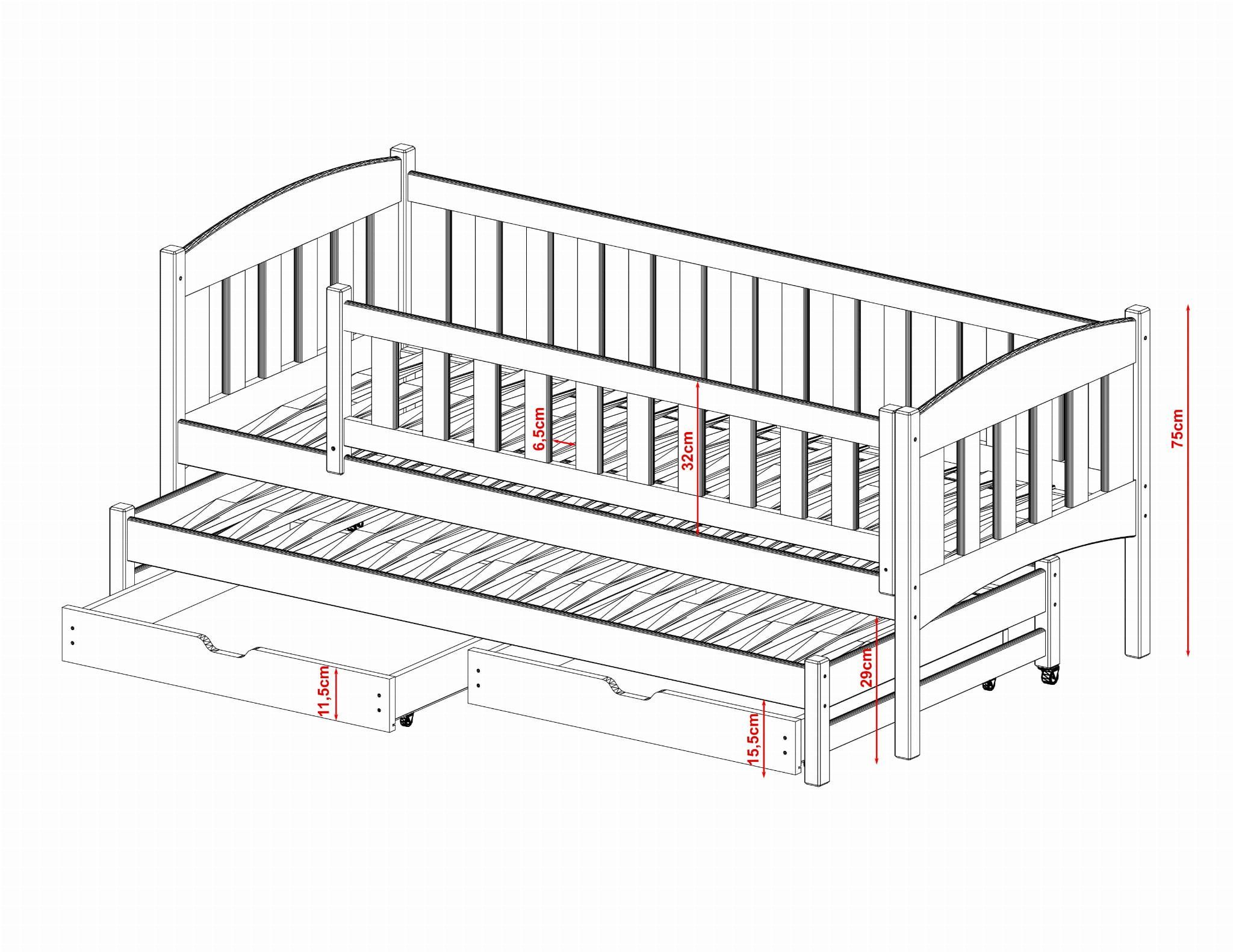 Kinderbett / Kinderbett AMELKA - Weiß / Beige / Graphit - verschiedene Größen