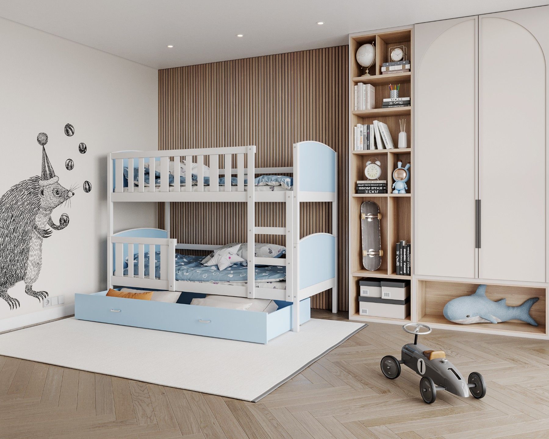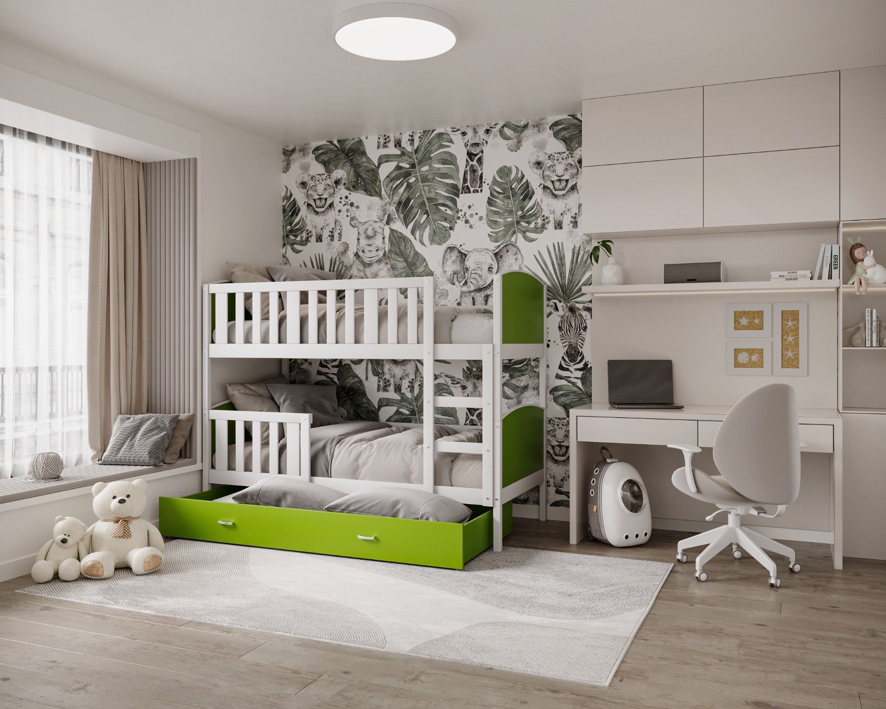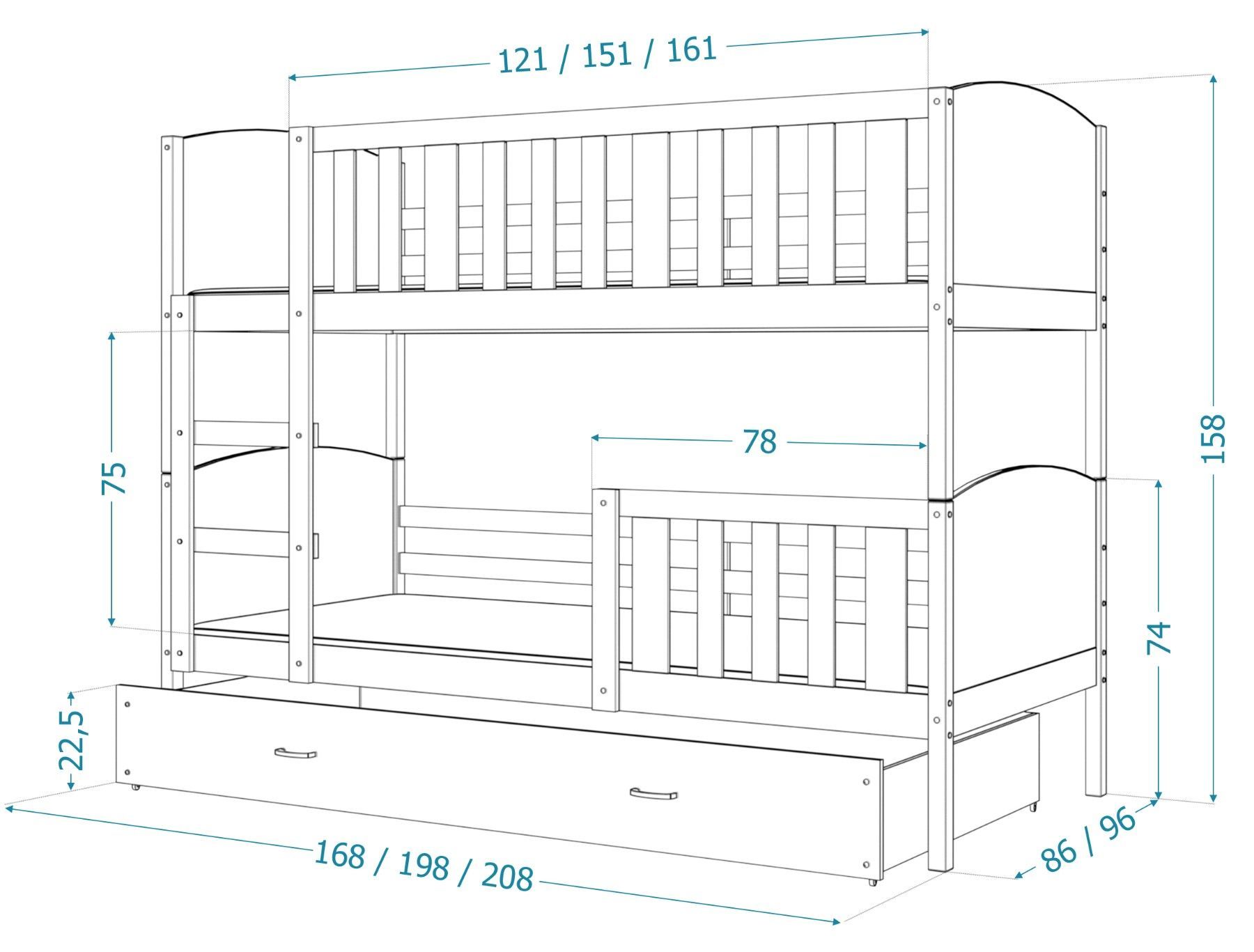 Kinderbett LEON Bett Etagenbett Kinderzimmer 2 Betten Schublade mit Matratze