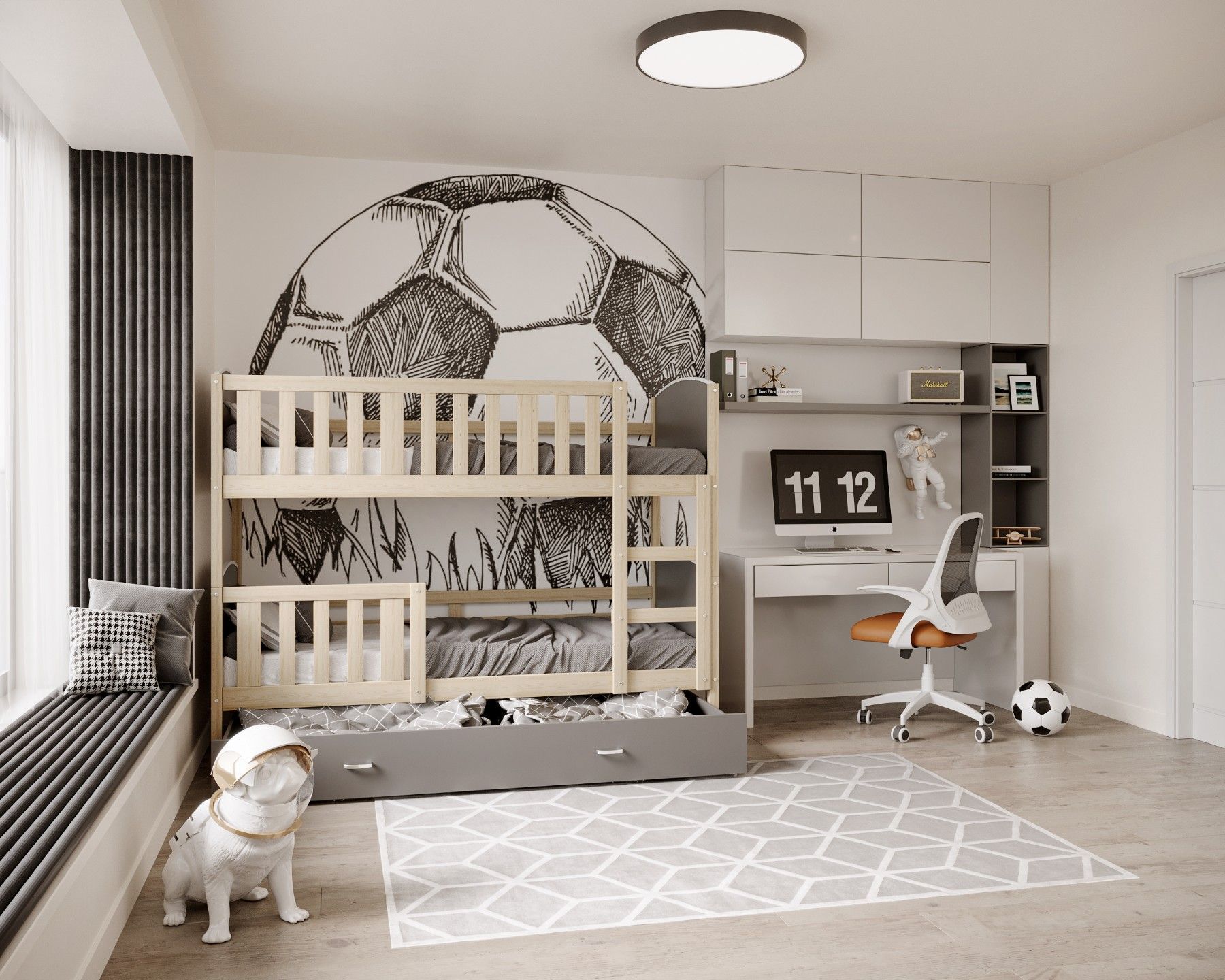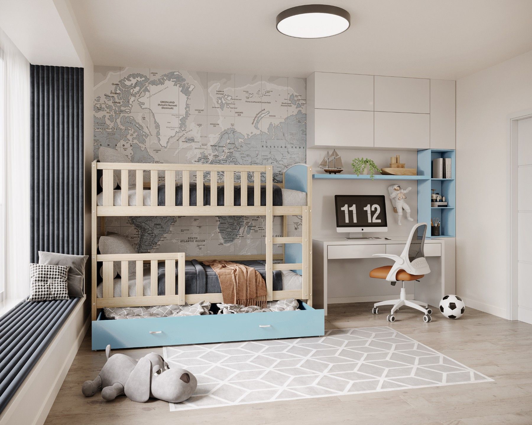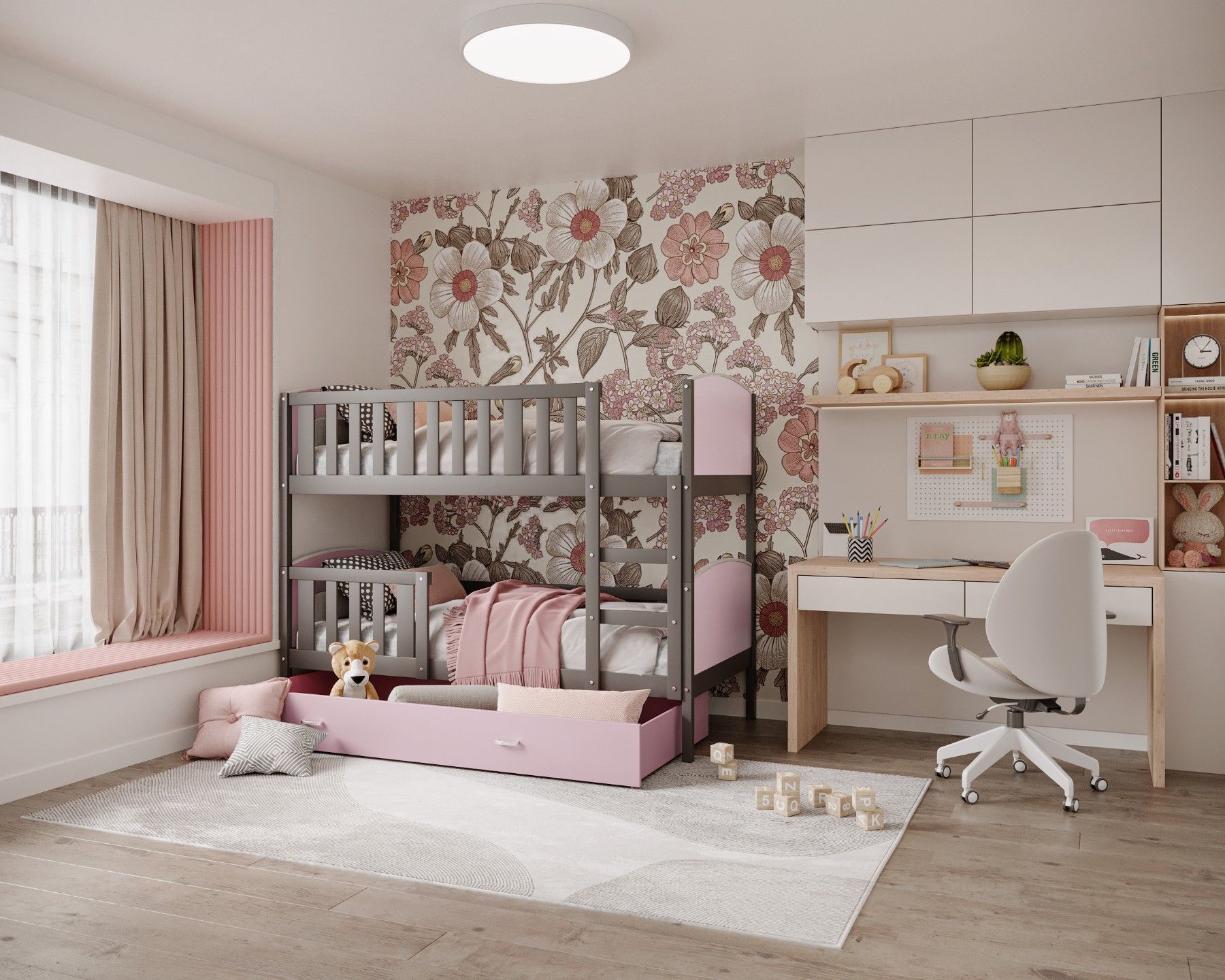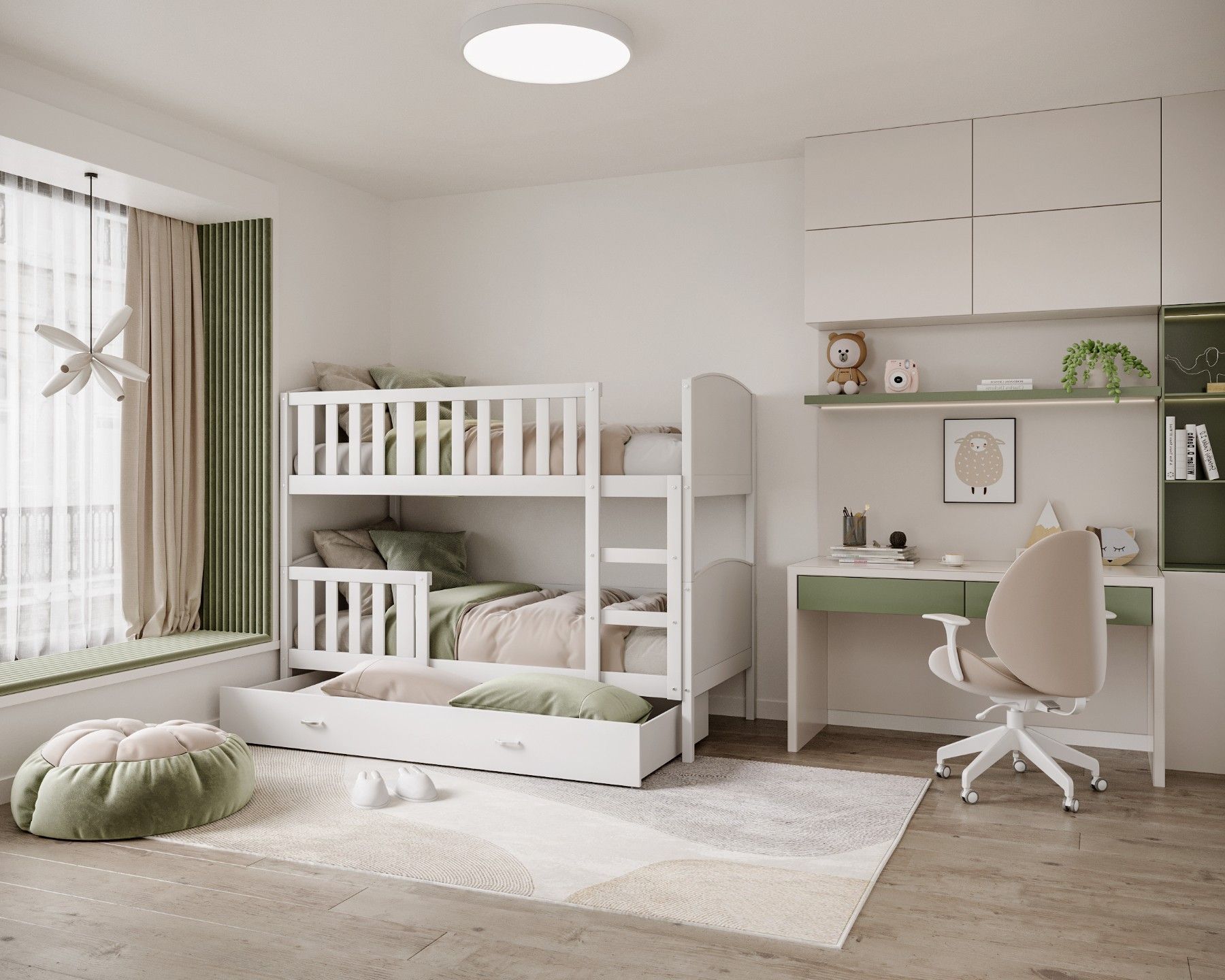 Kinderbett LEON Bett Etagenbett Kinderzimmer 2 Betten Schublade mit Matratze
