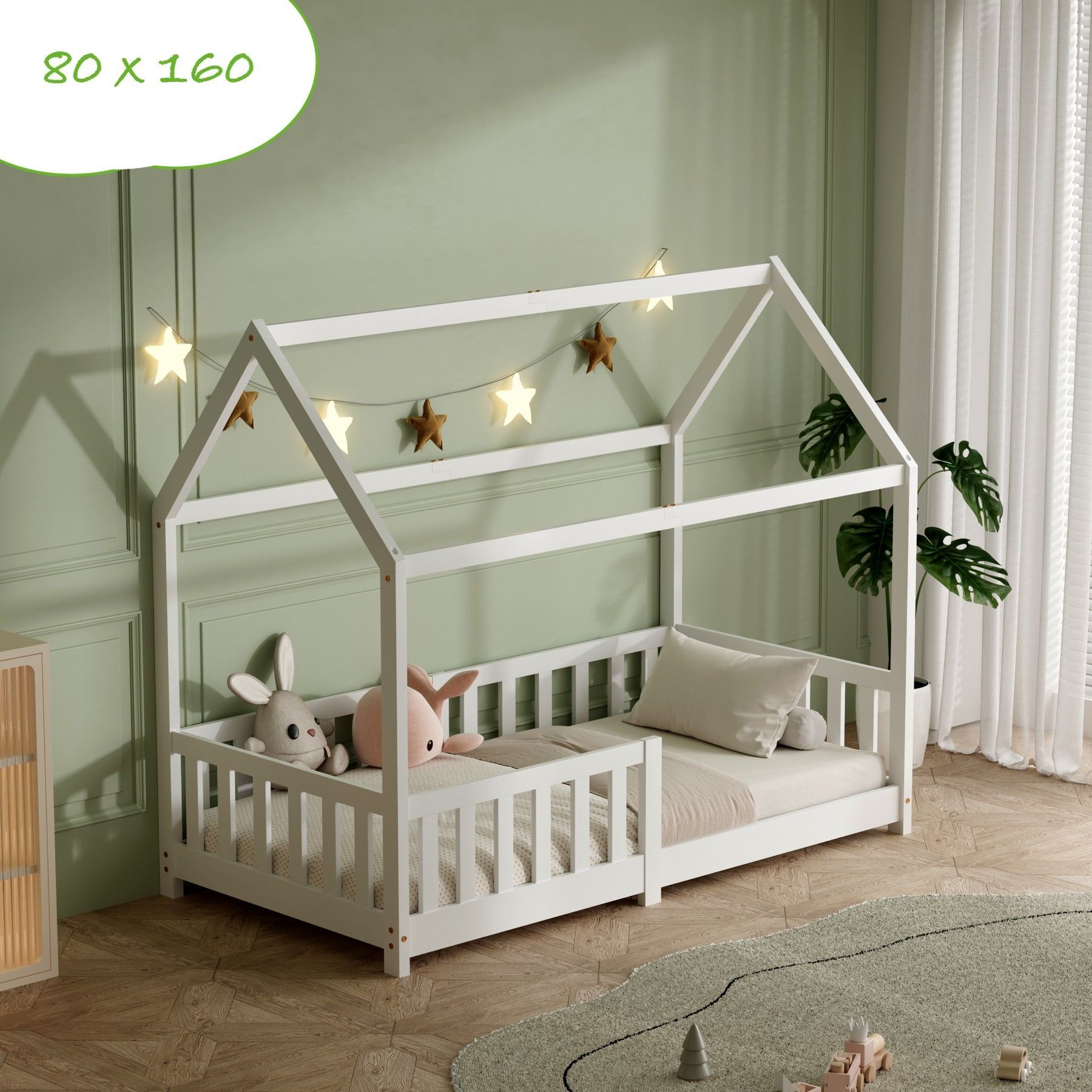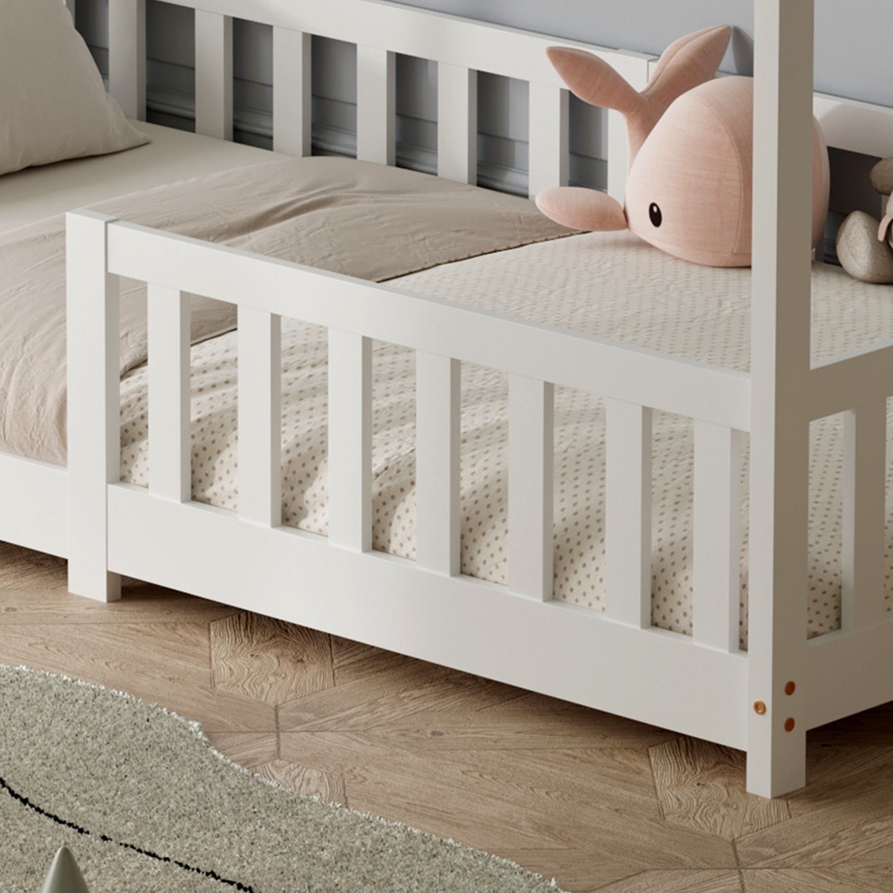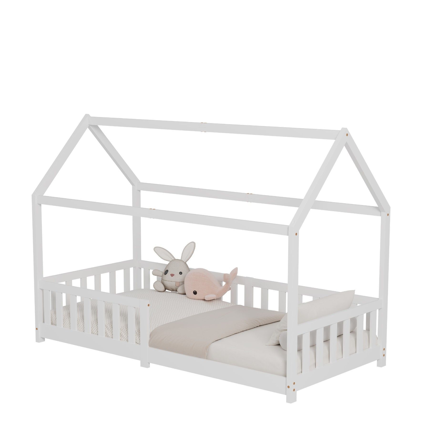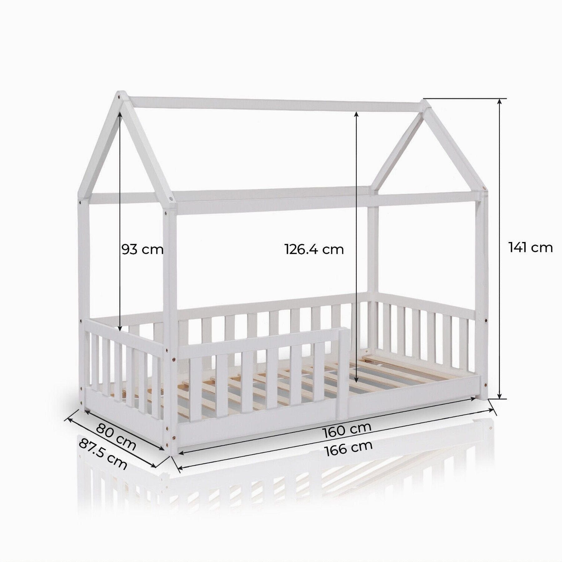 Kinderbett mit Rausfallschutz & Lattenrost | 80x160 cm, 90x200 | Natur, Weiß