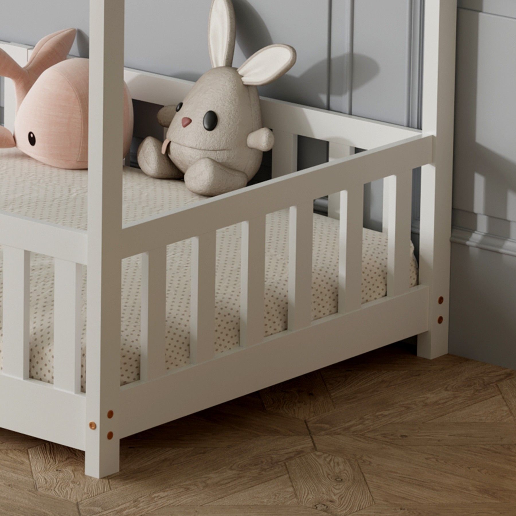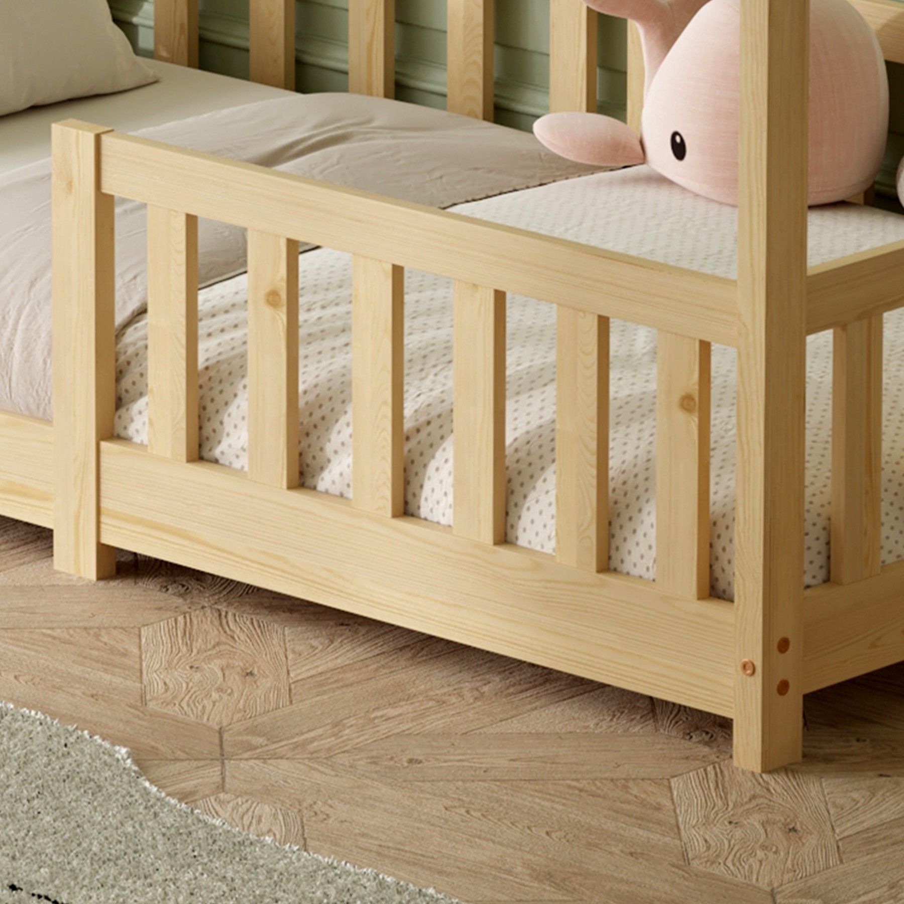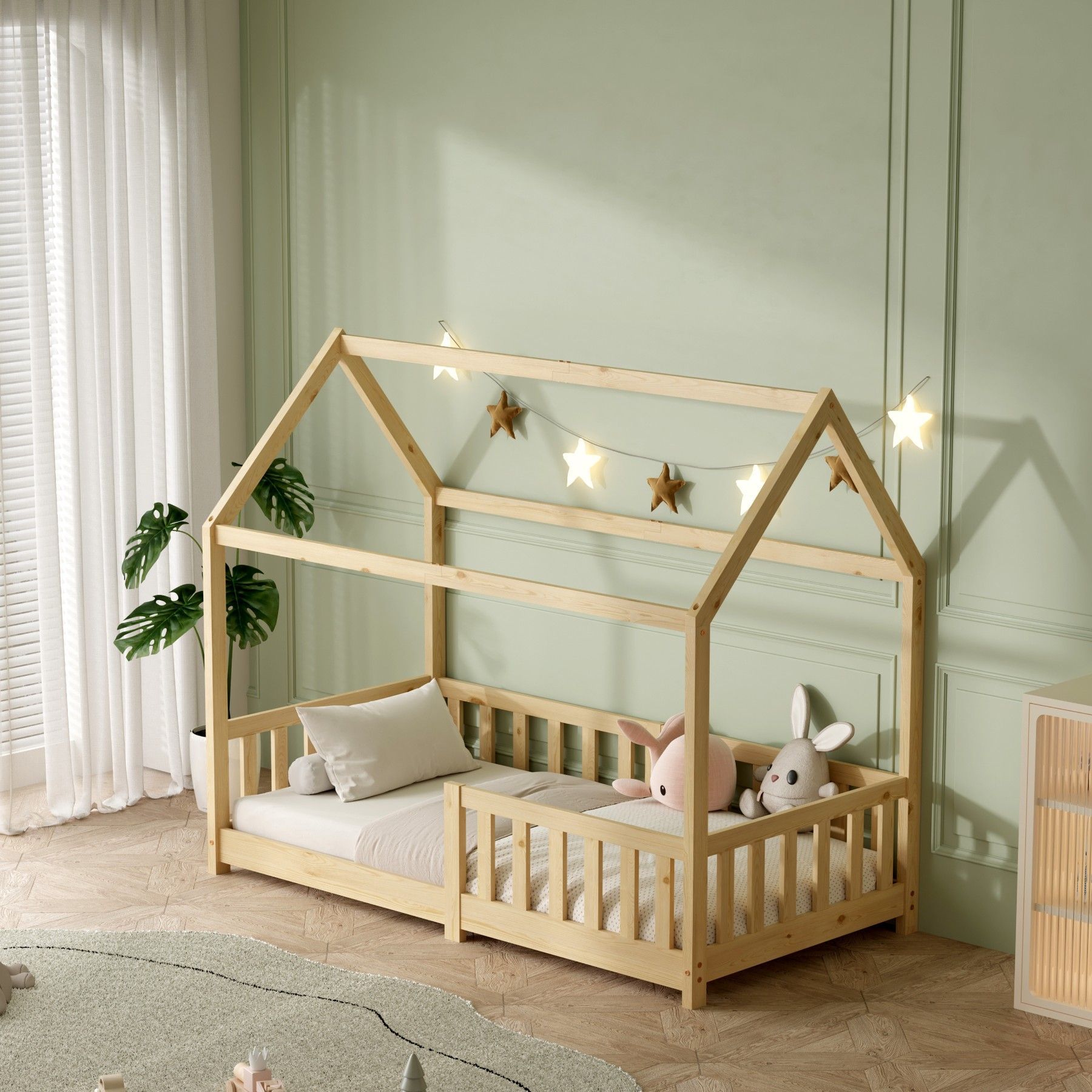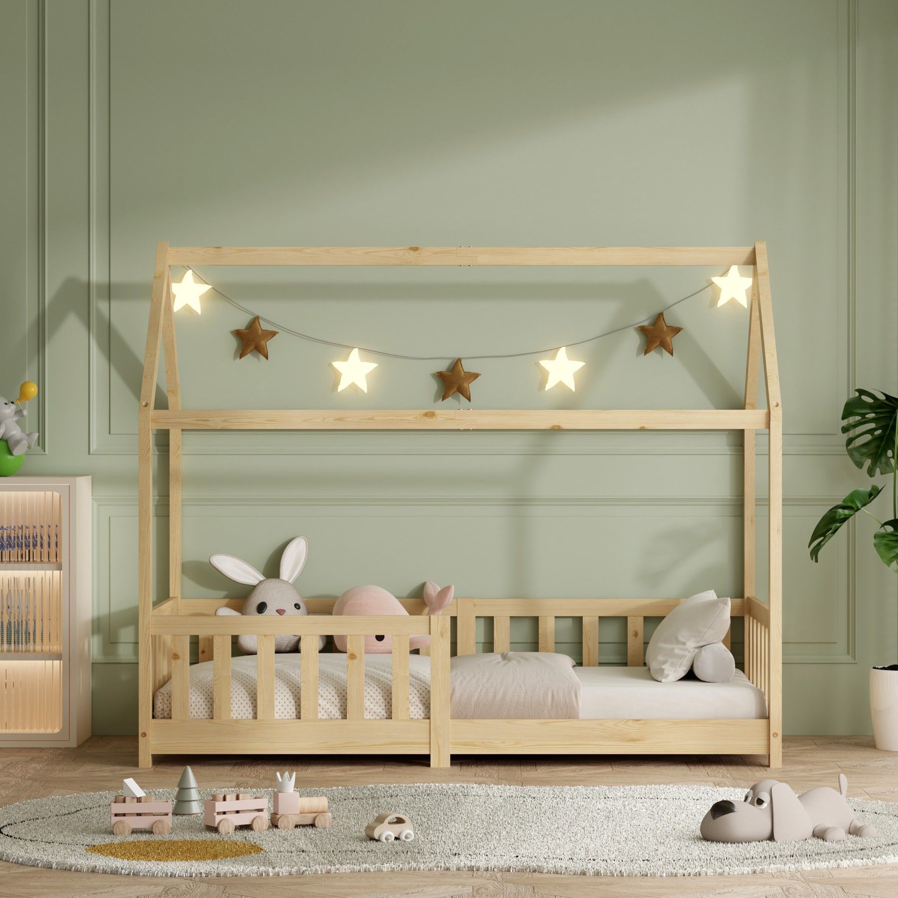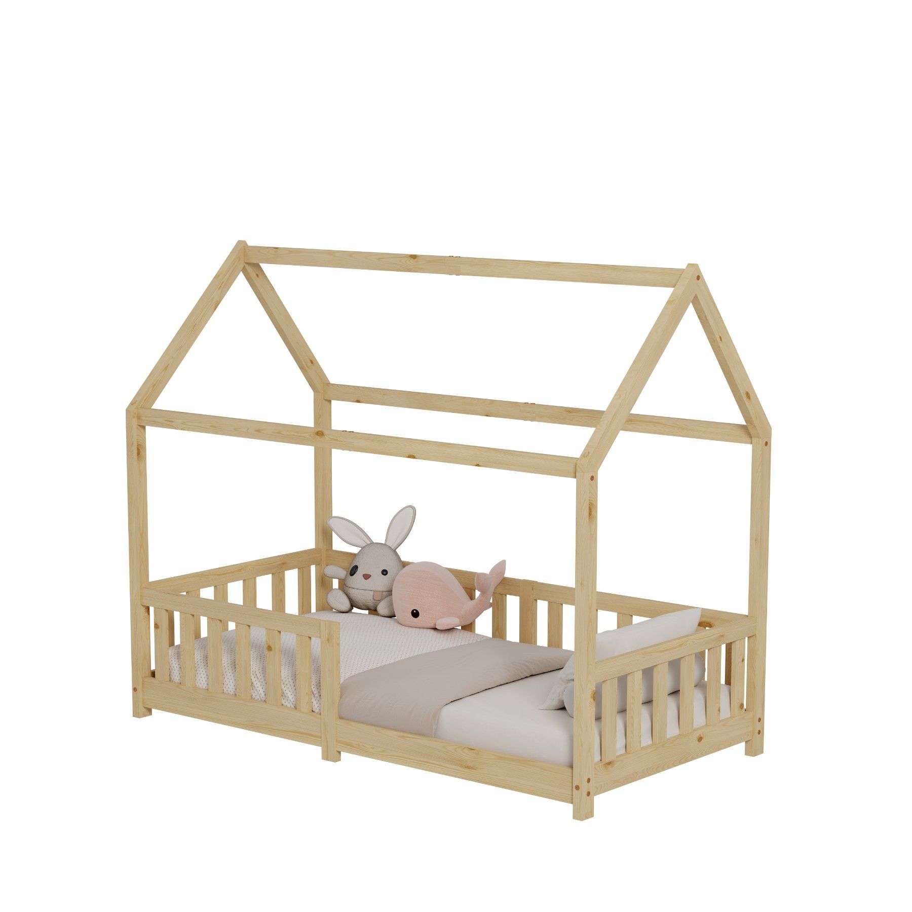 Kinderbett mit Rausfallschutz & Lattenrost | 80x160 cm, 90x200 | Natur, Weiß
