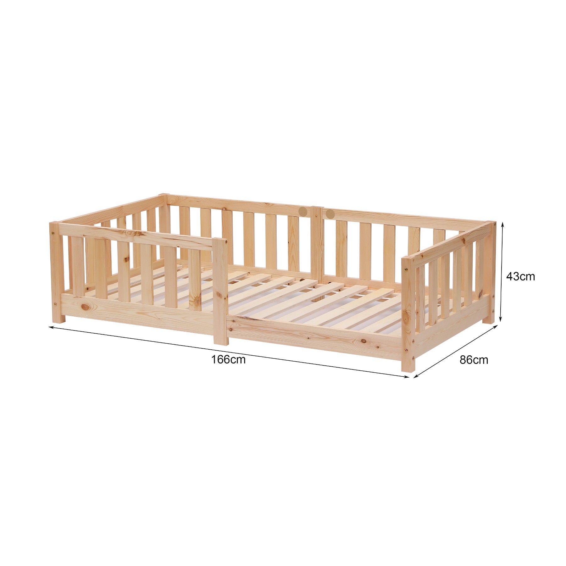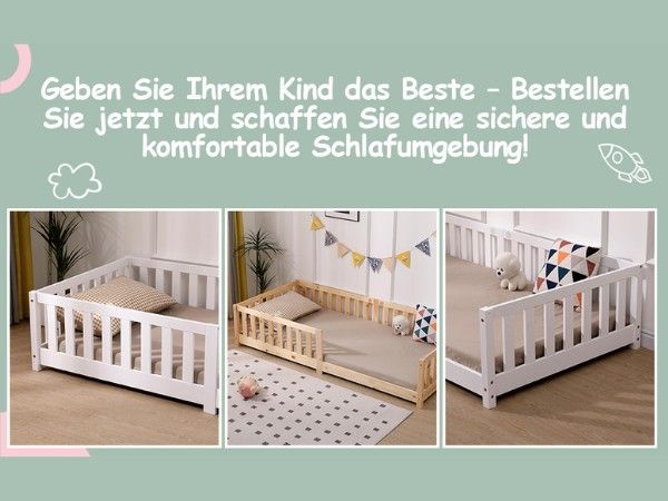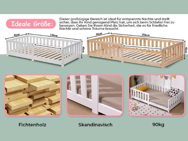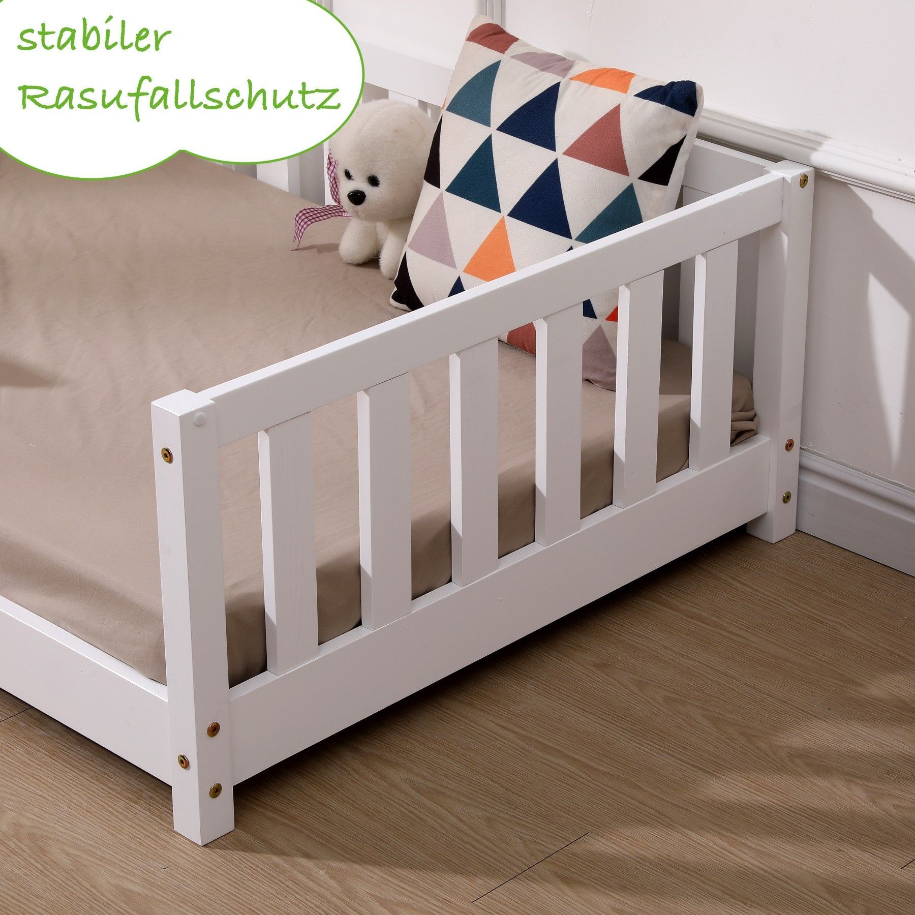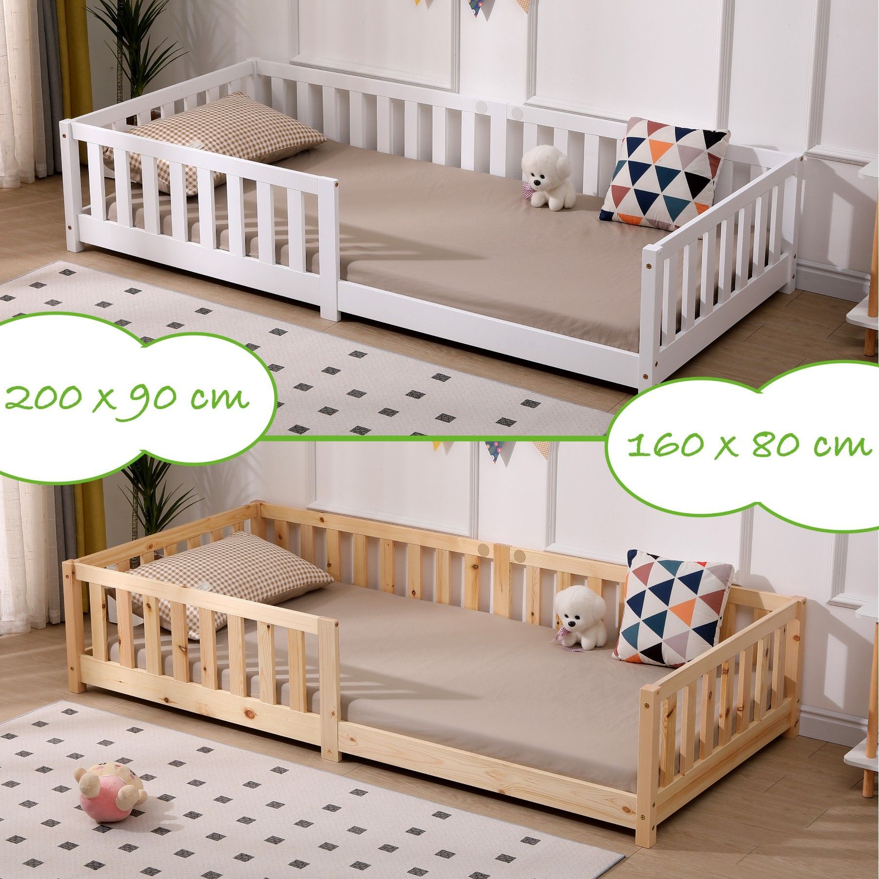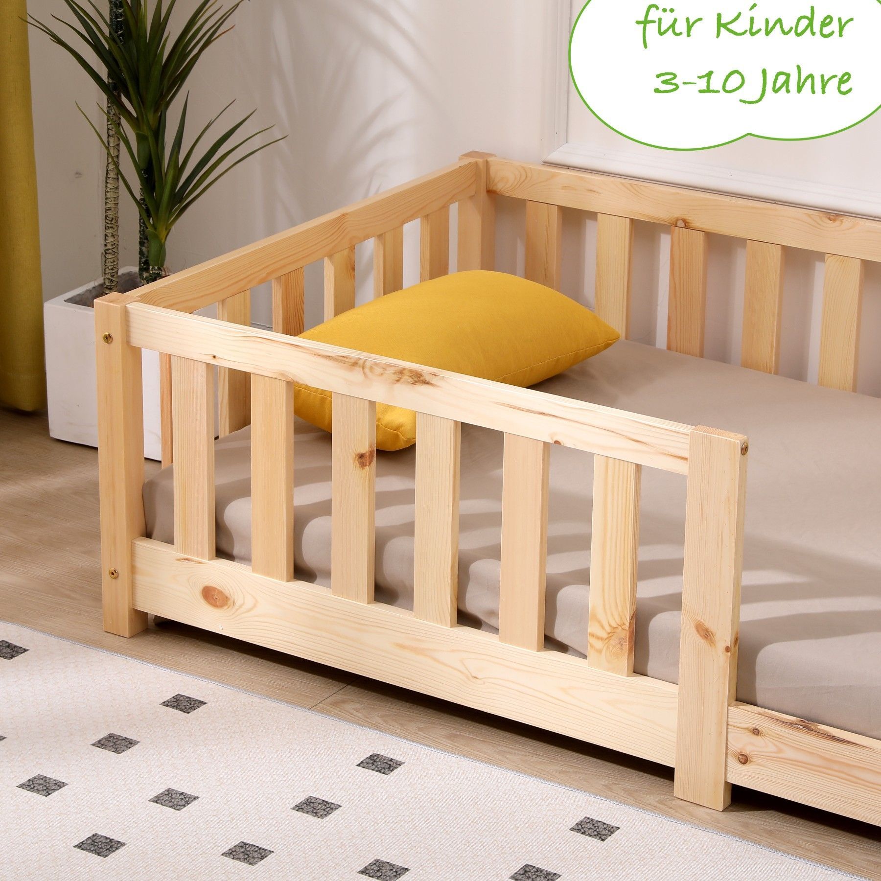 Kinderbett mit Rausfallschutz & Lattenrost | 80x160 cm, 90x200 | Natur, Weiß