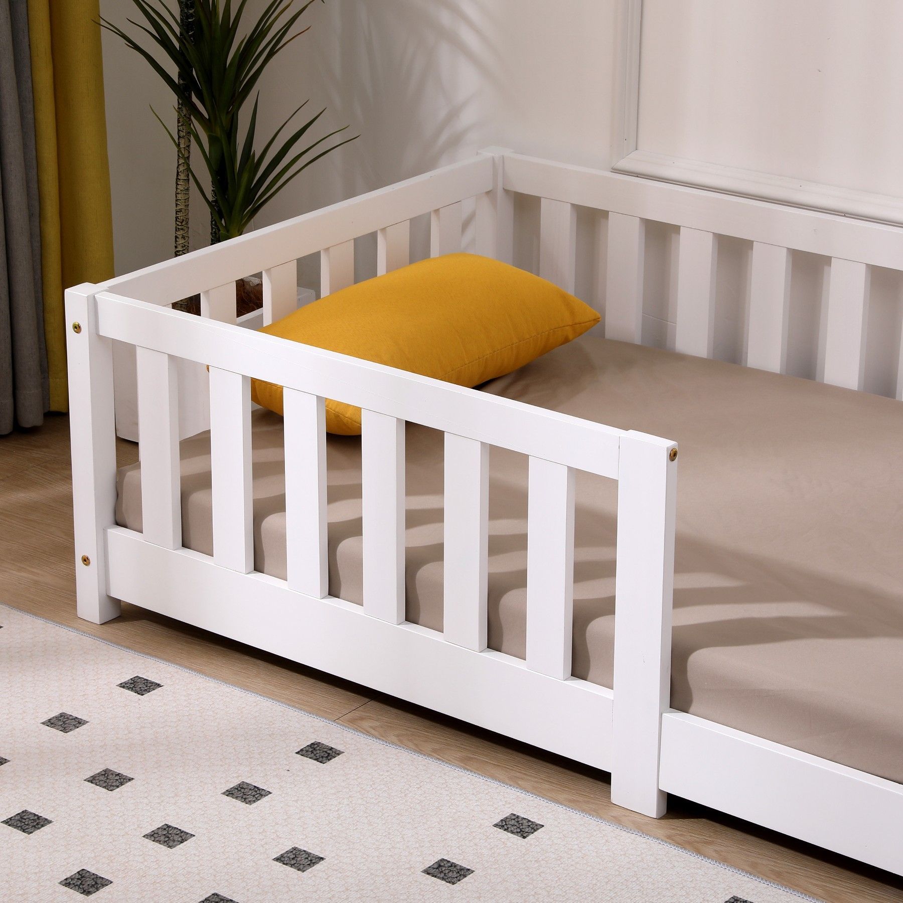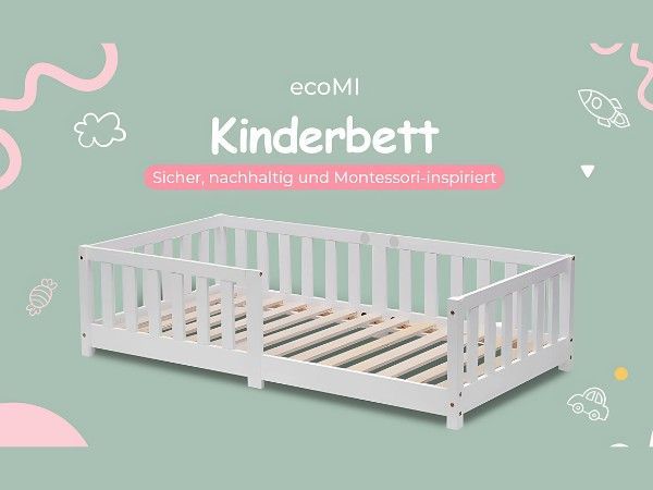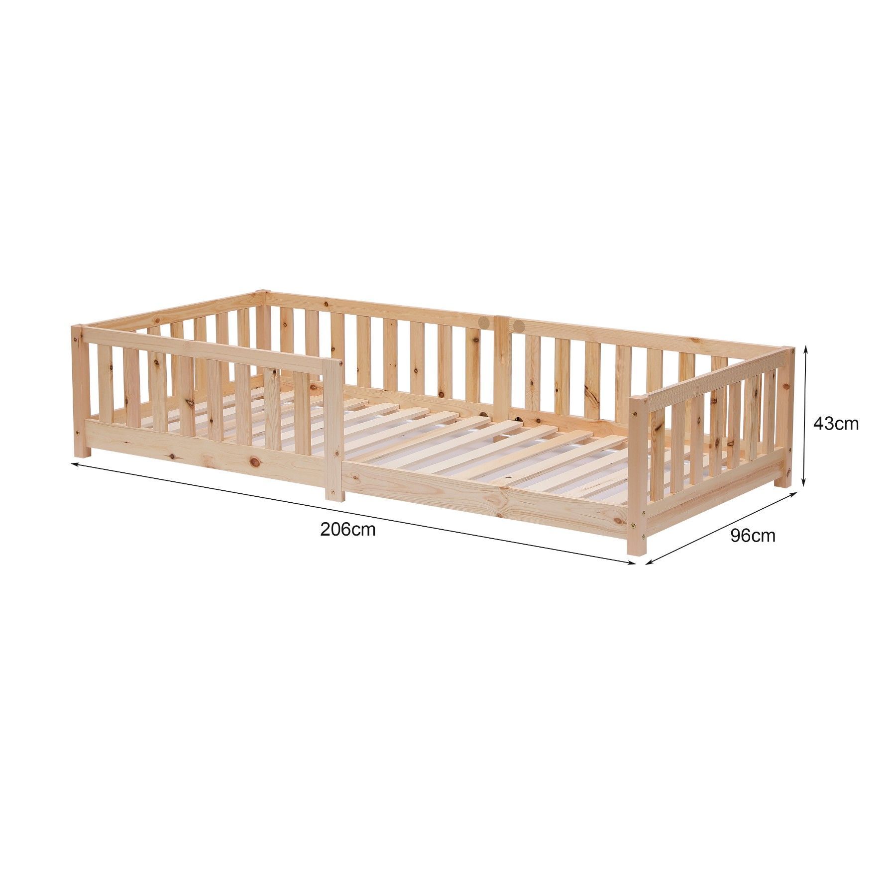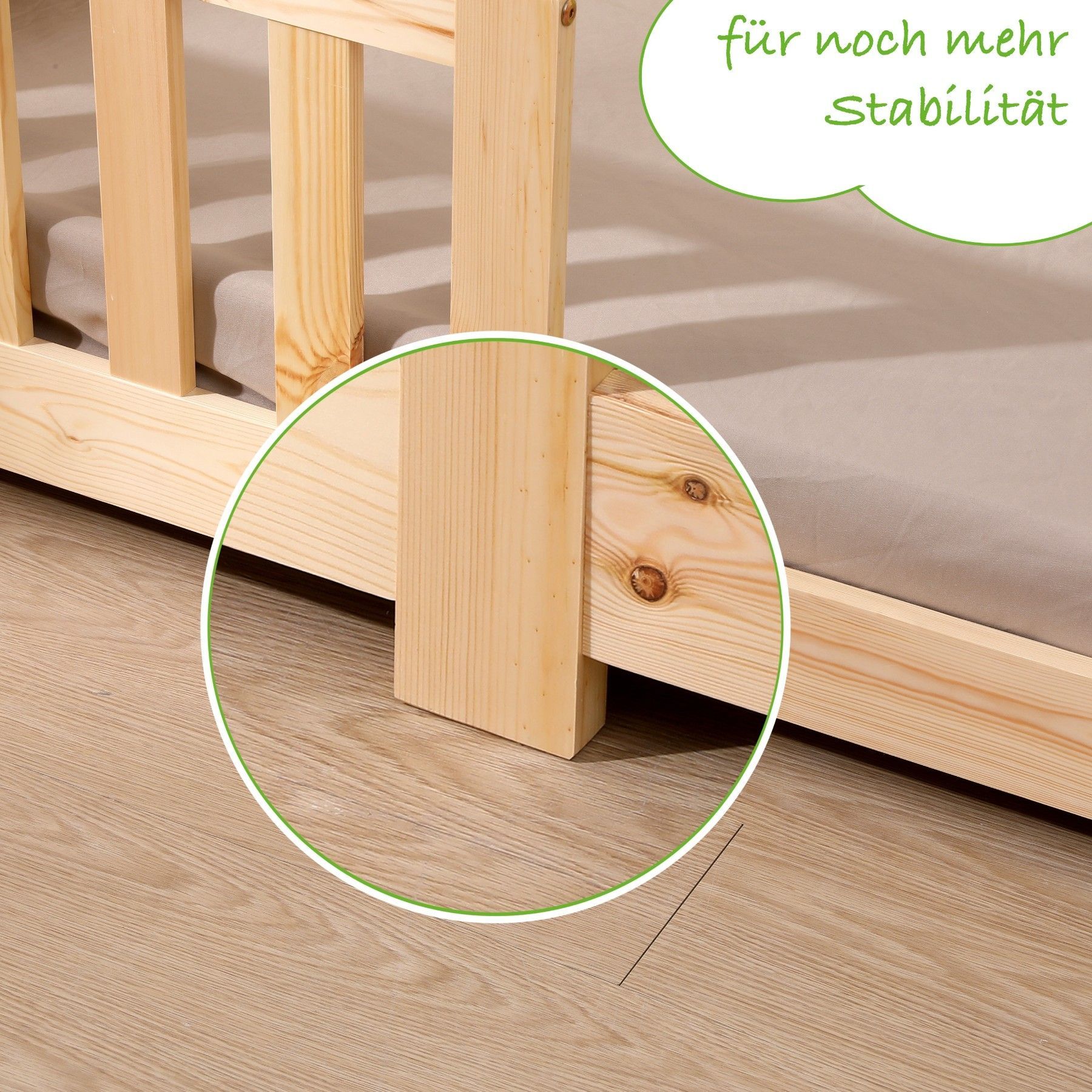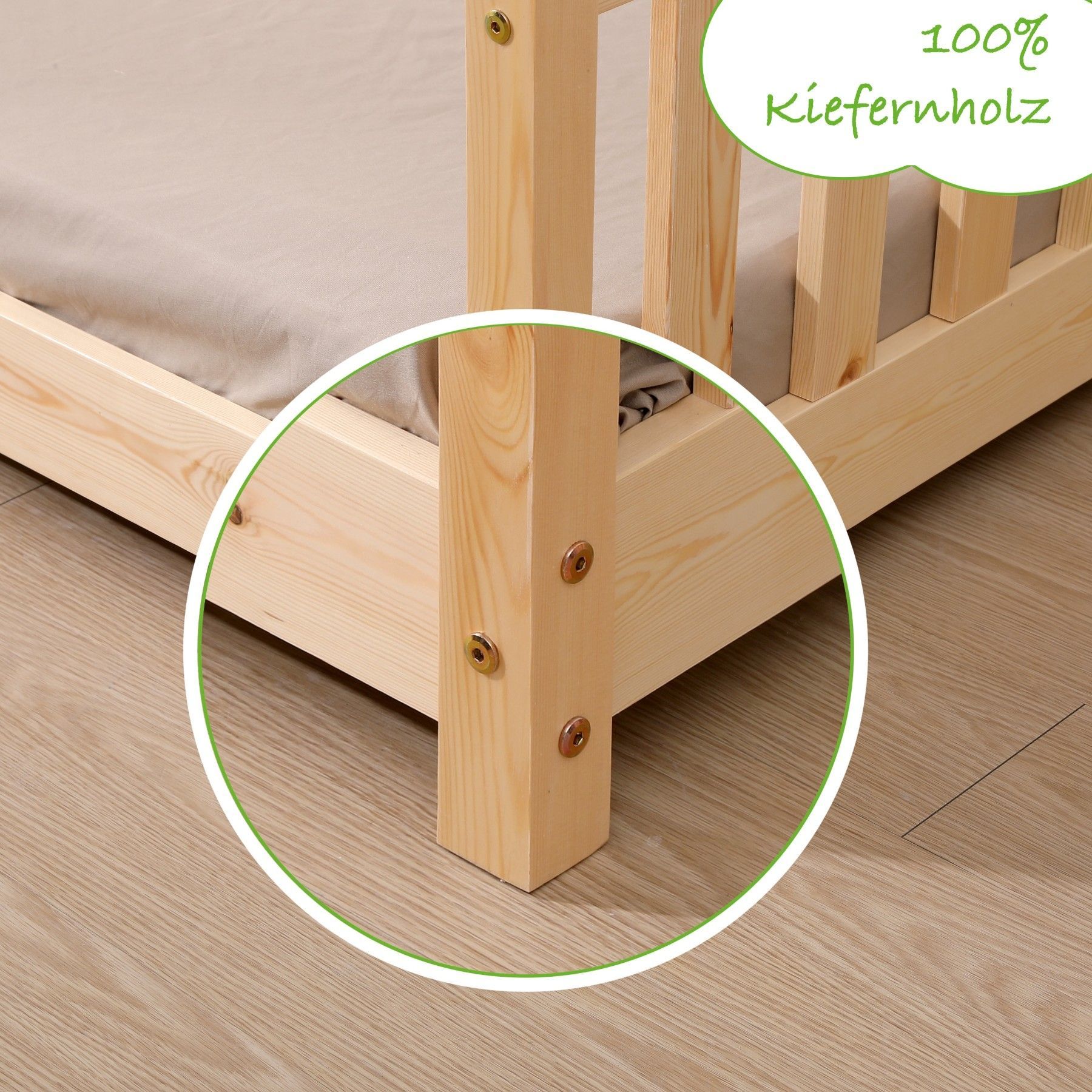 Kinderbett mit Rausfallschutz & Lattenrost | 80x160 cm, 90x200 | Natur, Weiß