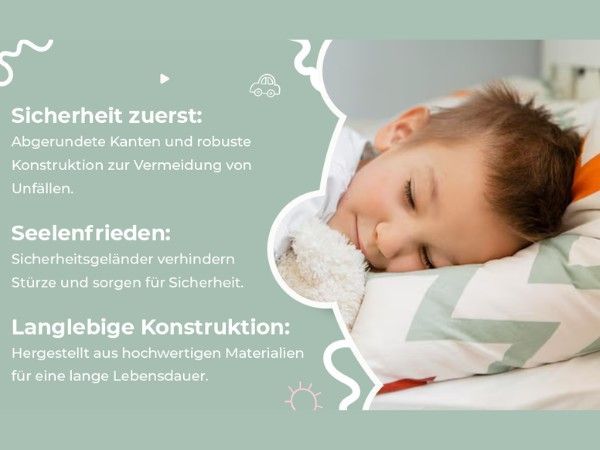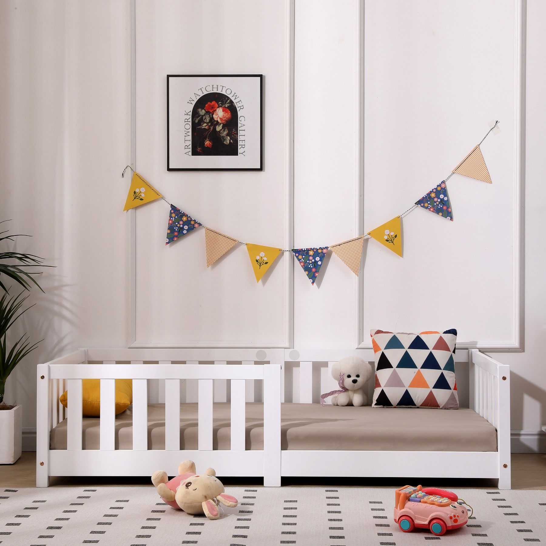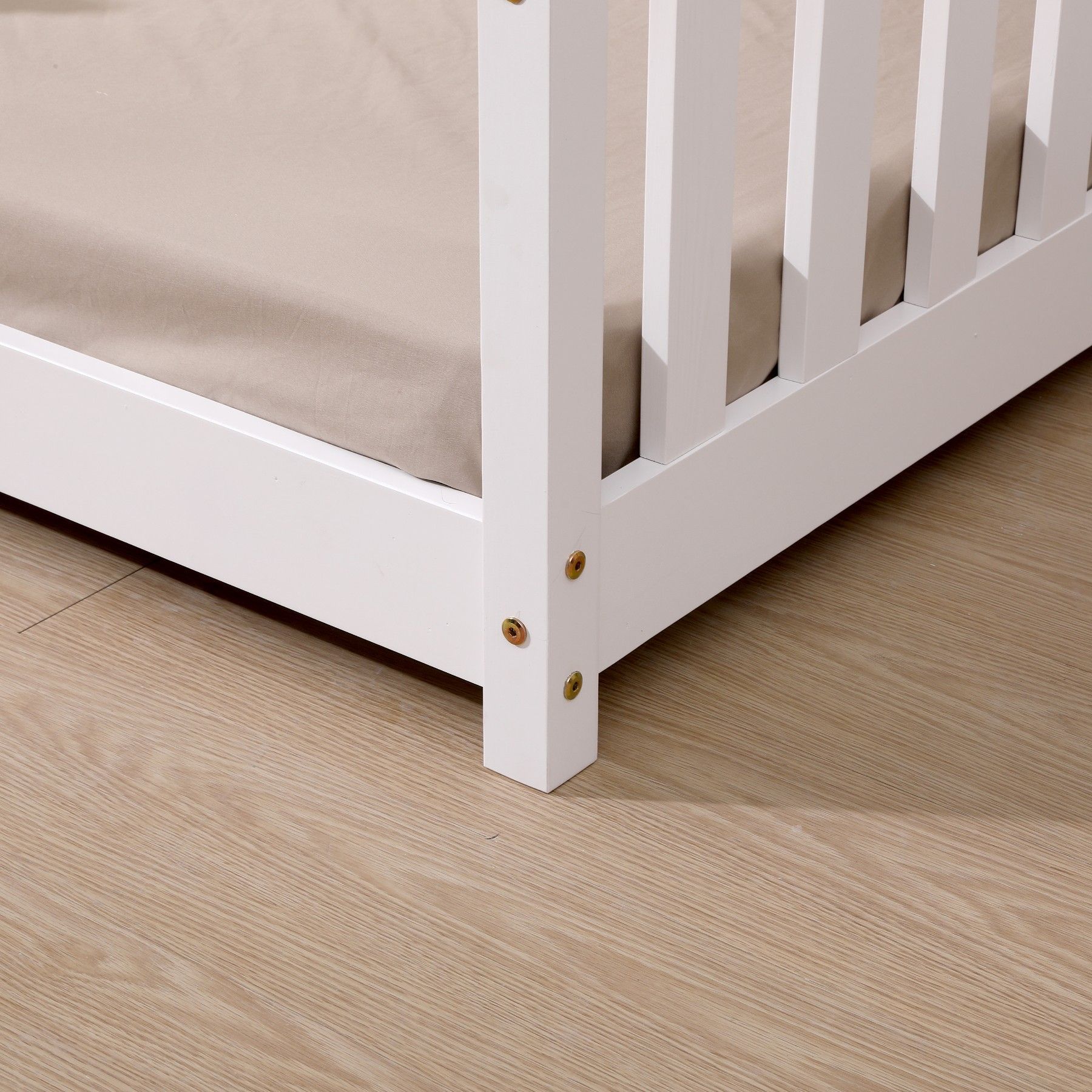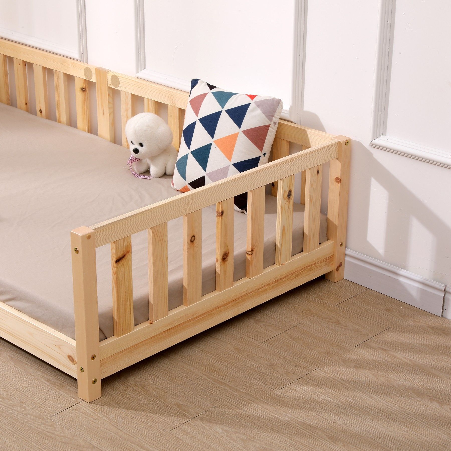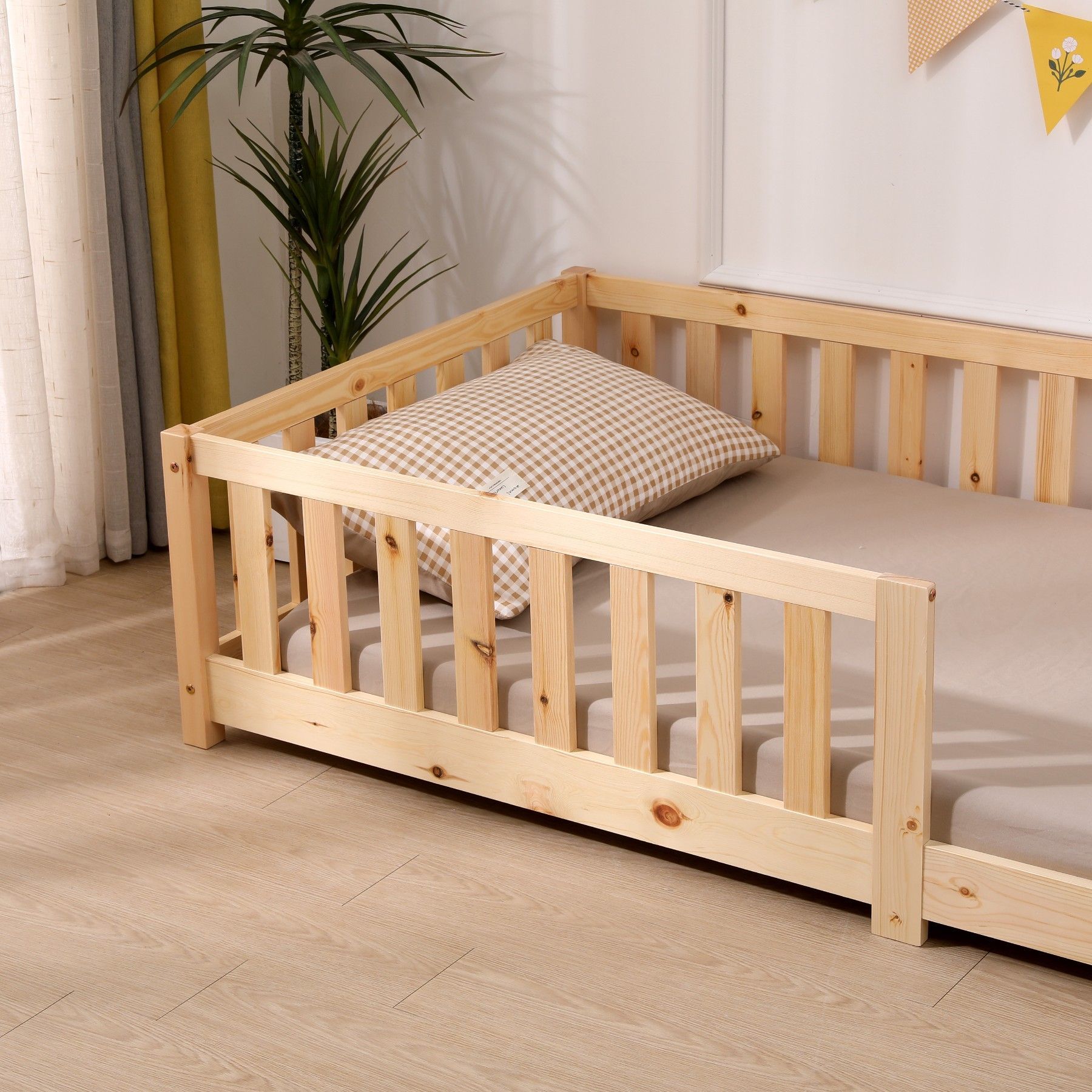 Kinderbett mit Rausfallschutz & Lattenrost | 80x160 cm, 90x200 | Natur, Weiß