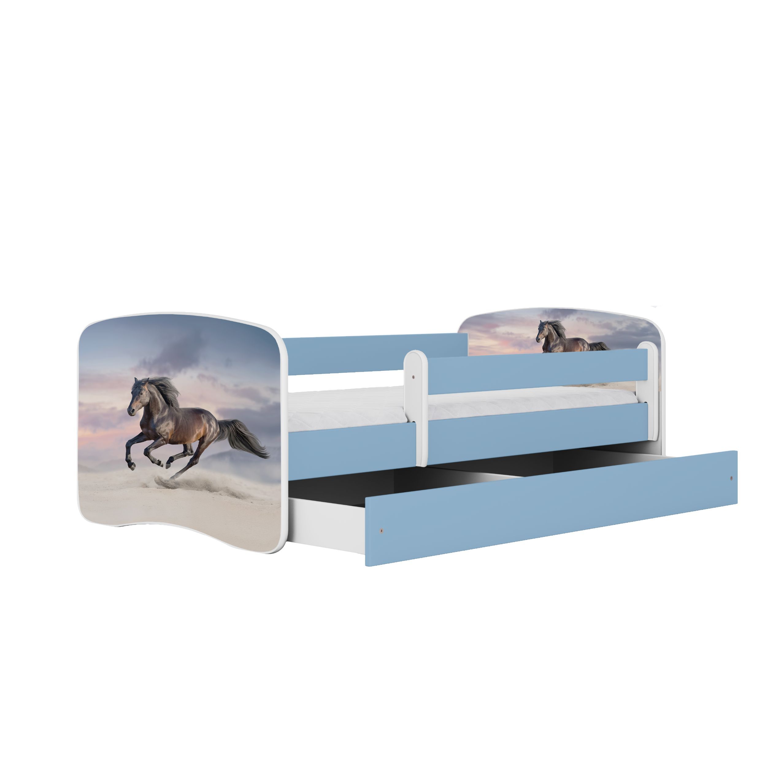 Kinderbett Pferd im Galopp mit Schublade ohne Matratze Blau Jugendbett 90/61/184
