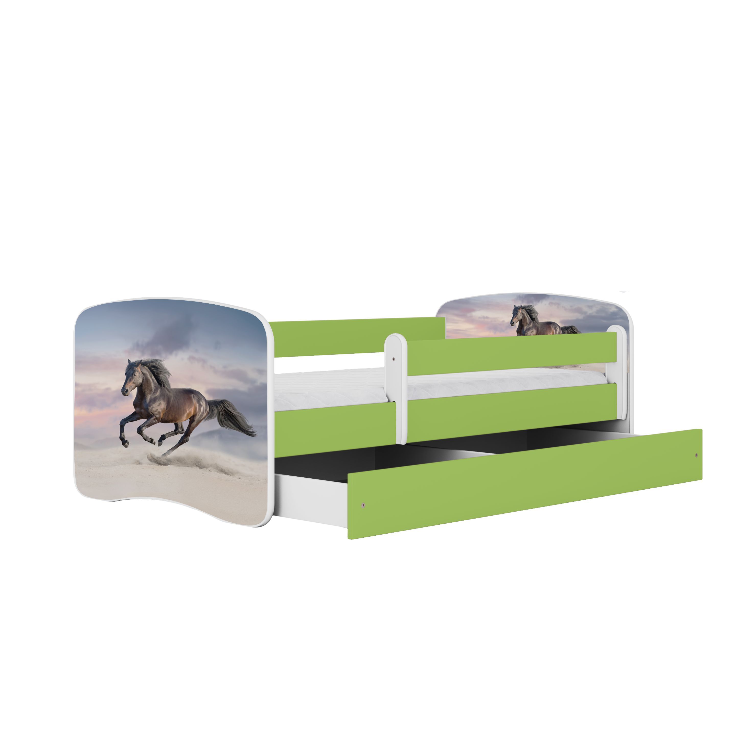 Kinderbett Pferd im Galopp mit Schublade und Matratze Grün Jugendbett 160/80