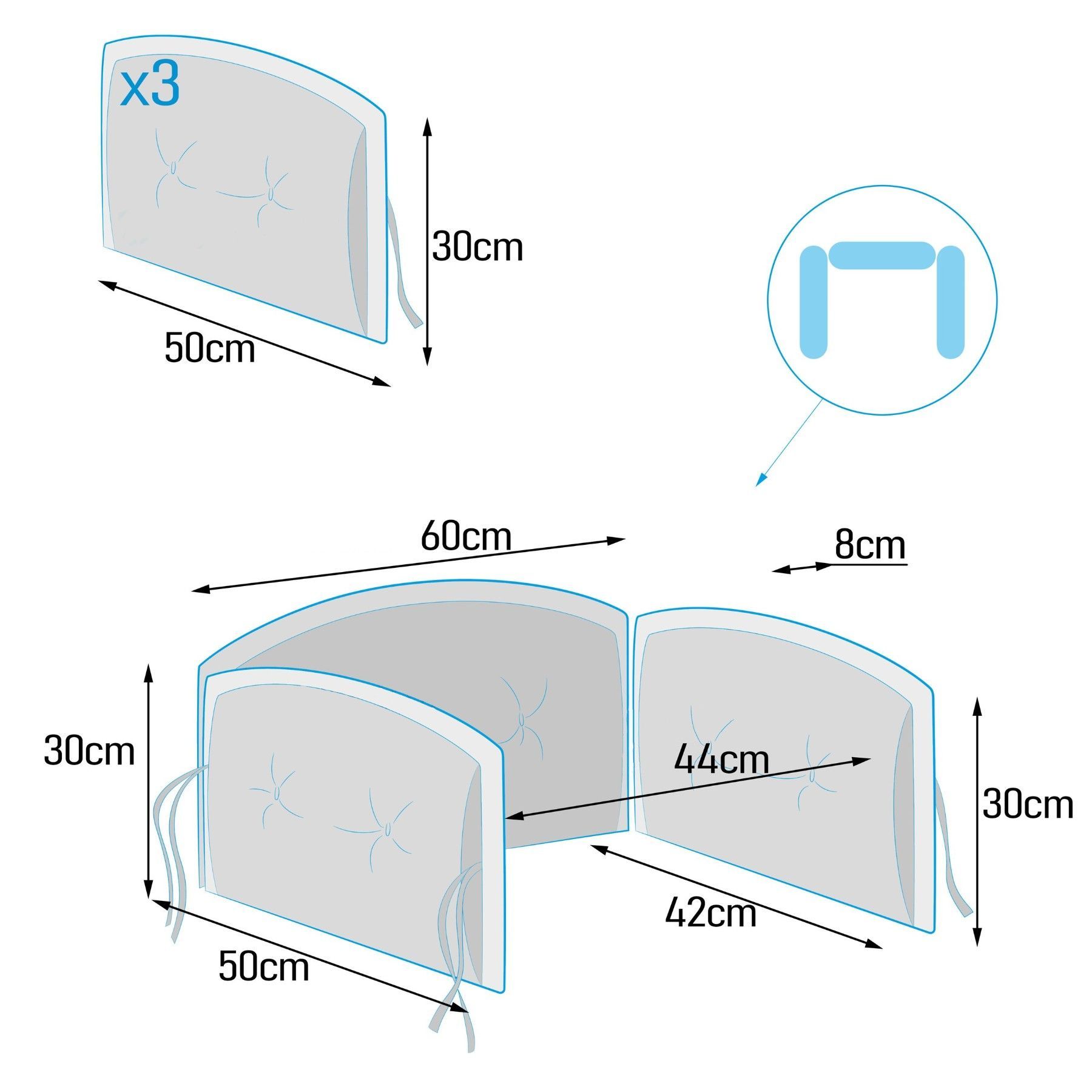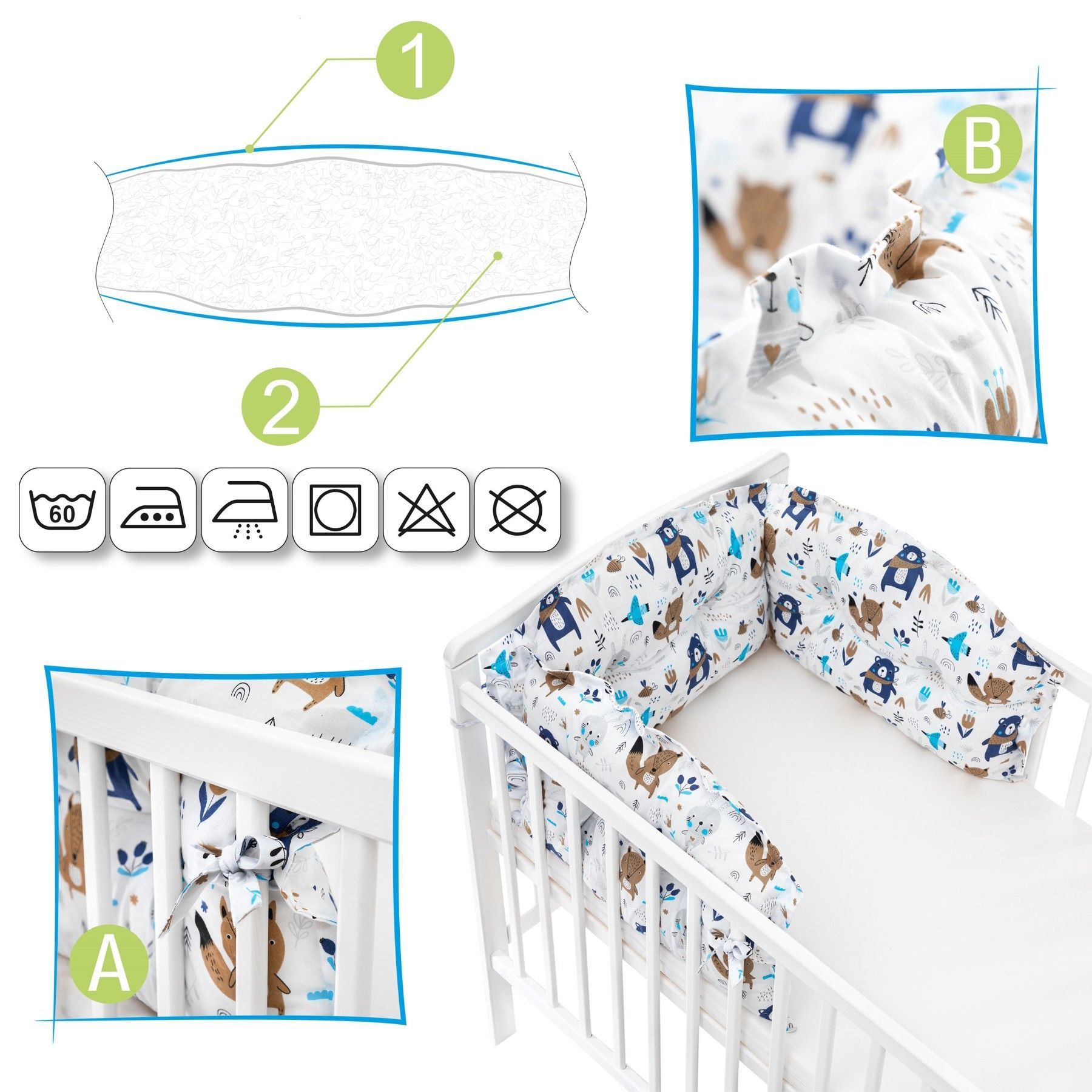 Kinderbettschoner, Schutzkissen für Babybett 150x30cm