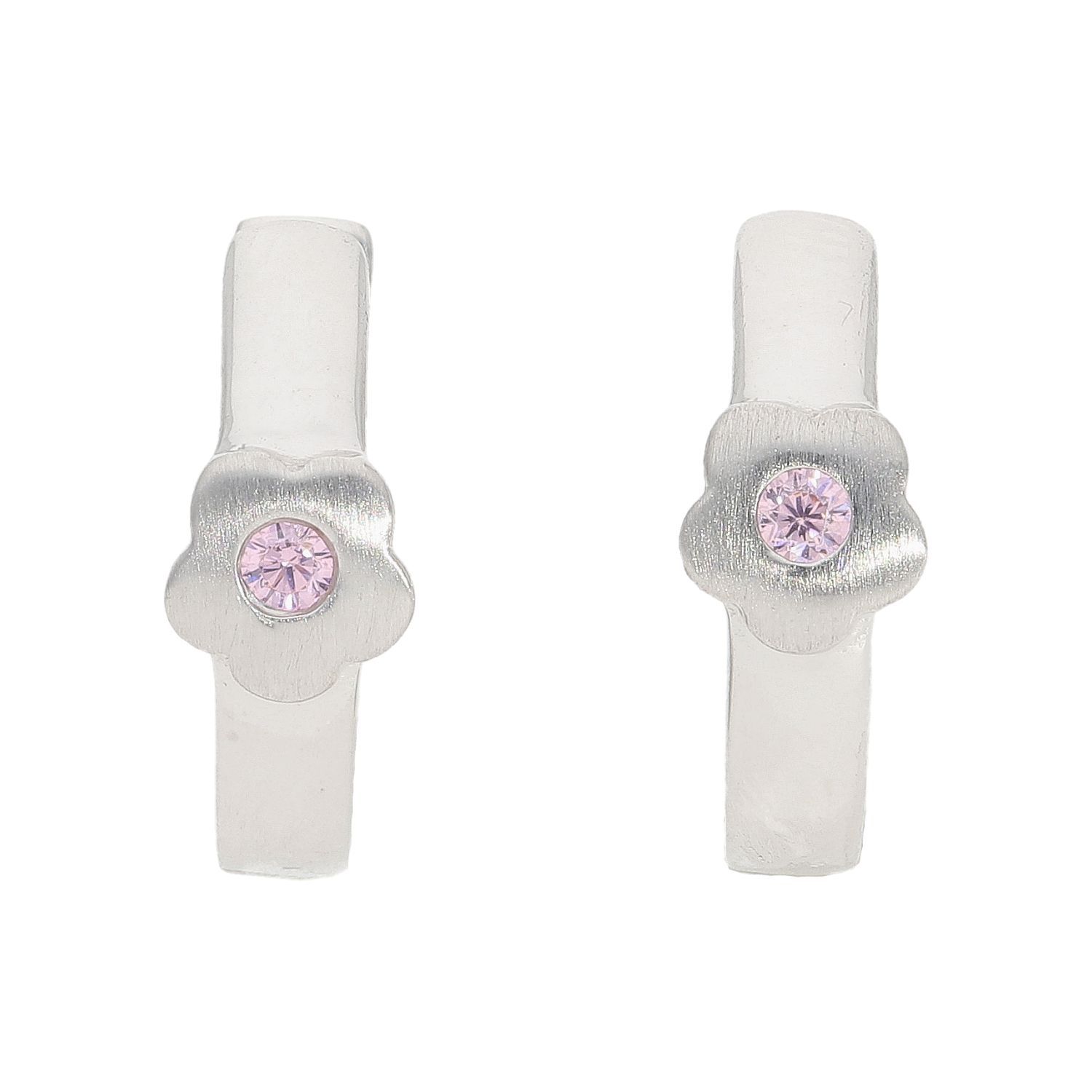 Kindercreolen mit Blume Silber 925 Rhodiniert, Zirkonia rosa JL20-06-1247