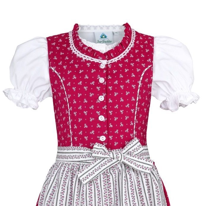 Isar-Trachten Kinderdirndl Süßes Kinderdirndl mit Landhausschürze aus dem Hause Isar-Trachten, erhältlich in rot oder pink. Material: 100% Baumwolle