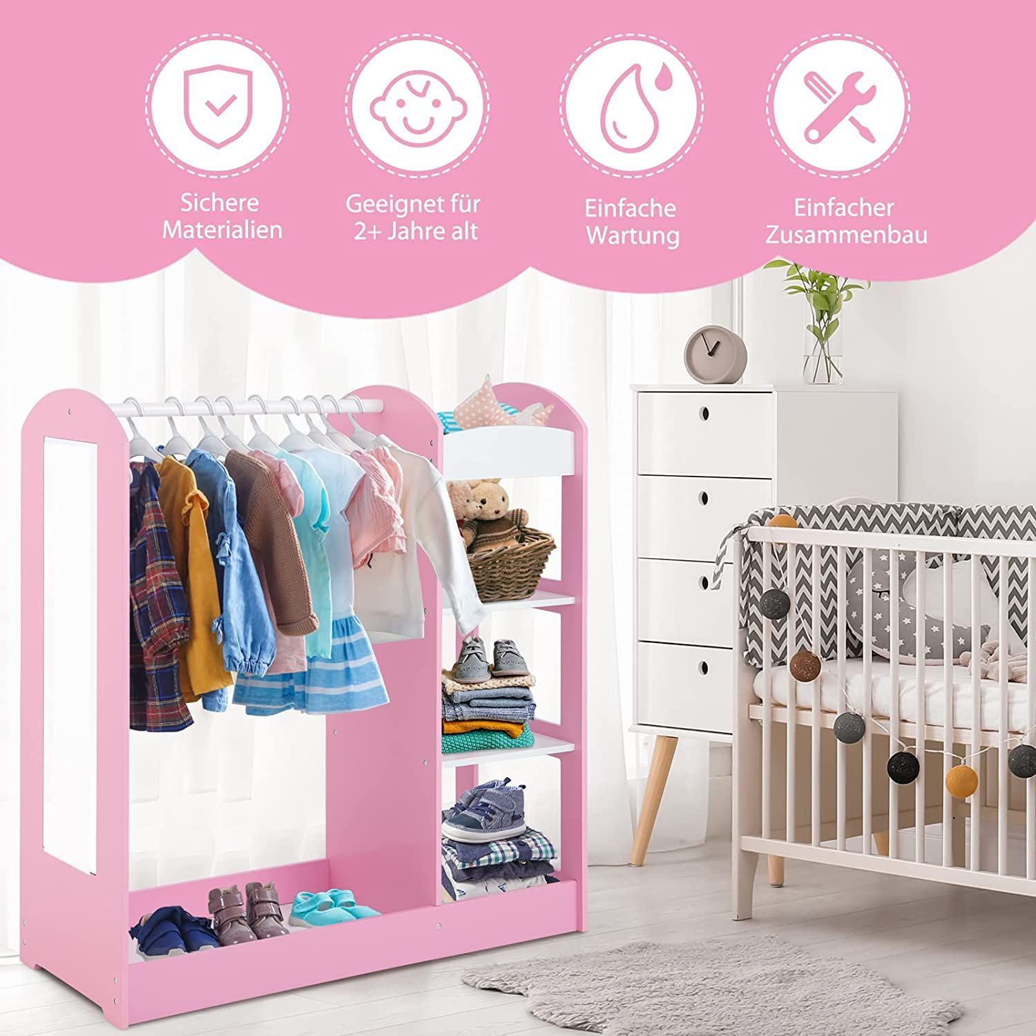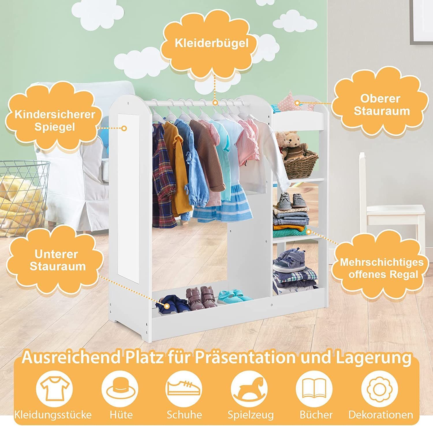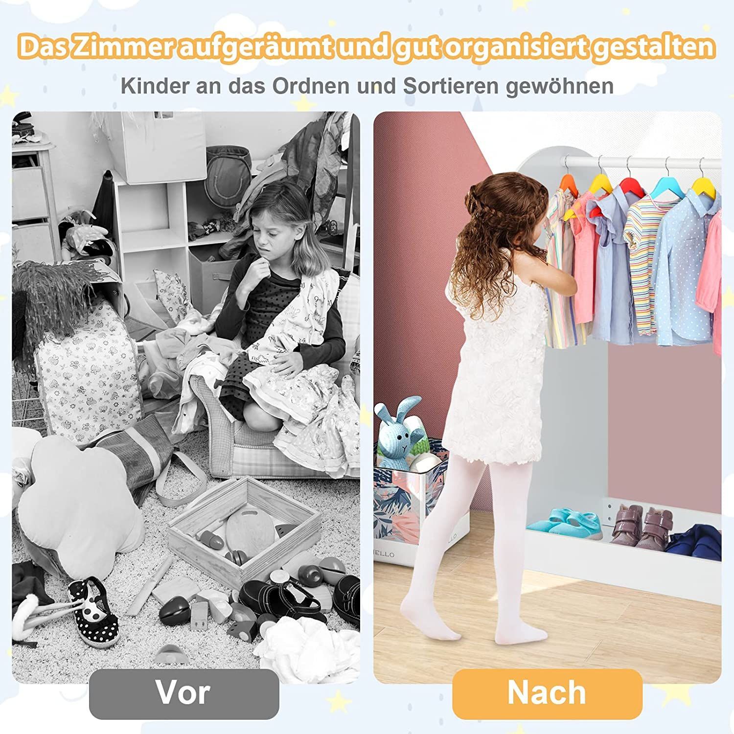 Kindergarderobe mit Spiegel & Ablagen, Kleiderschrank aus Holz, Kinder Kleiderständer