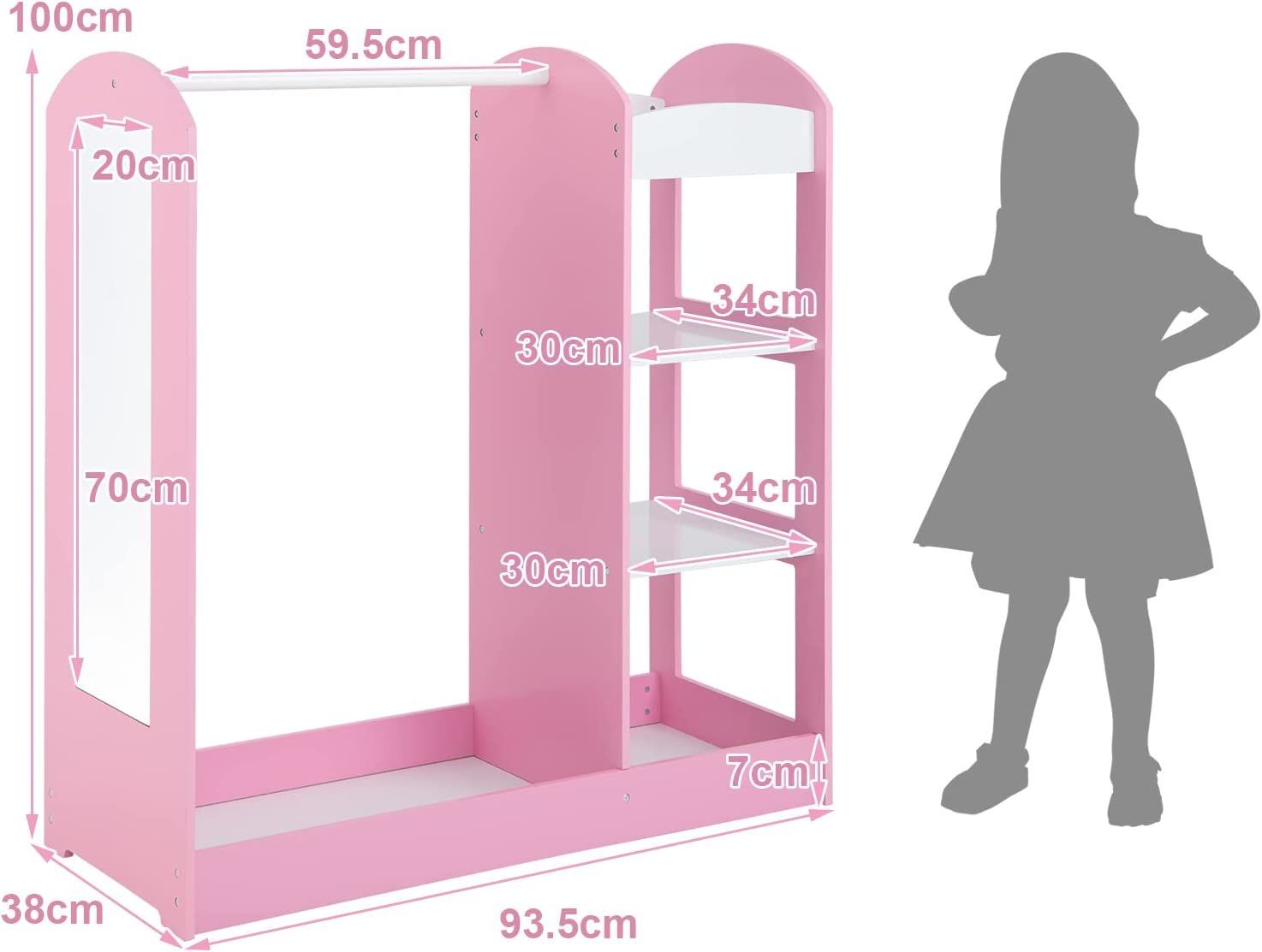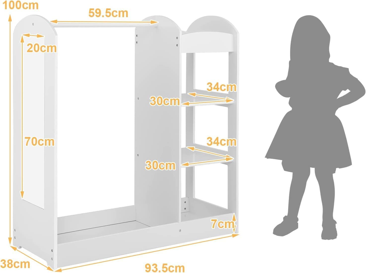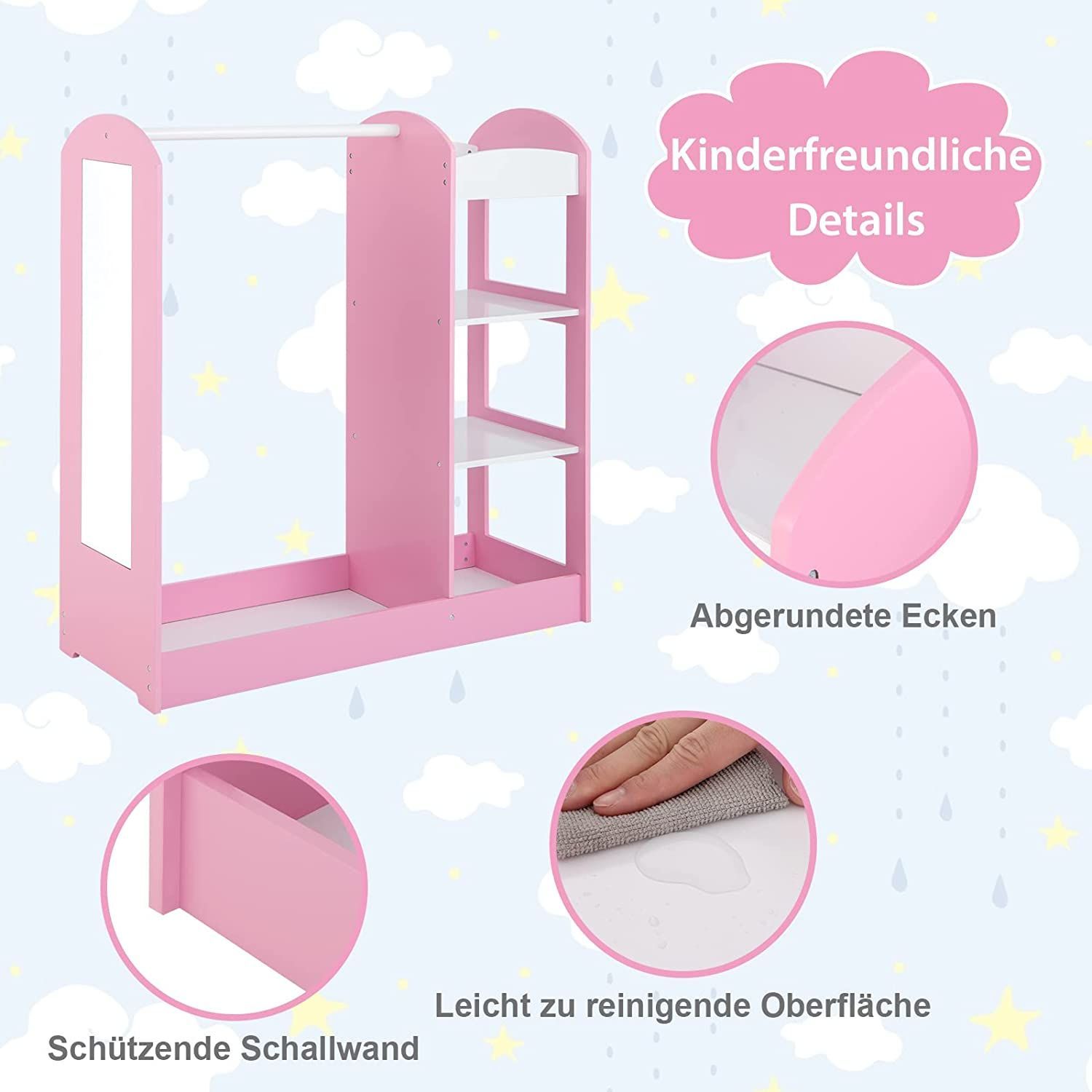 Kindergarderobe mit Spiegel & Ablagen, Kleiderschrank aus Holz, Kinder Kleiderständer