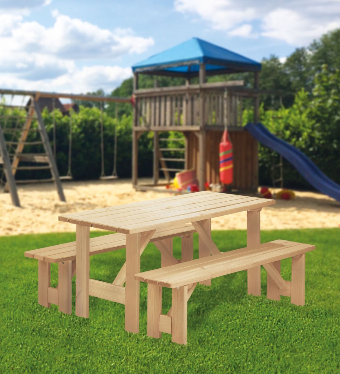 Kindergarnitur Holz Robusto KID 118 cm Sitzgruppe Garten Kinder
