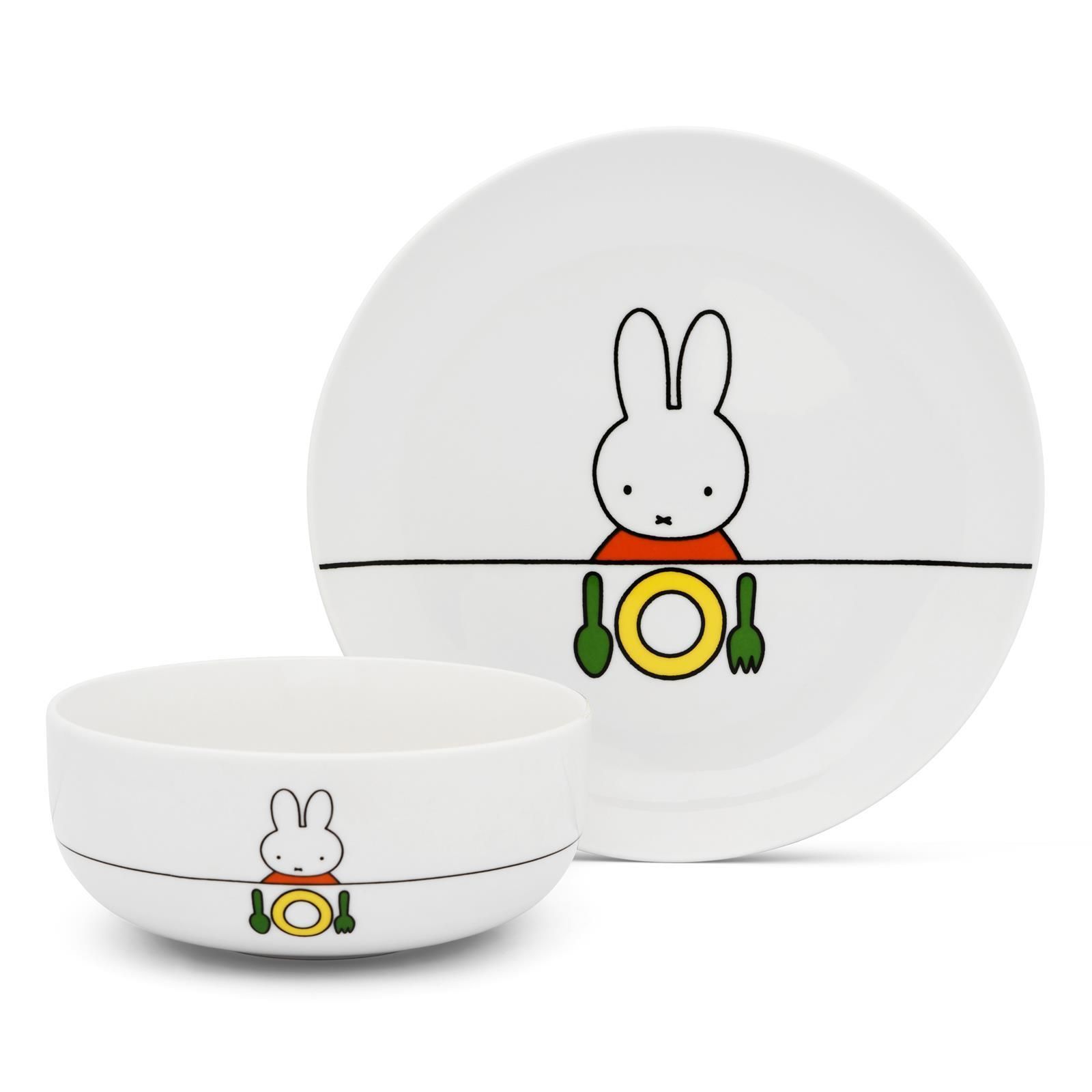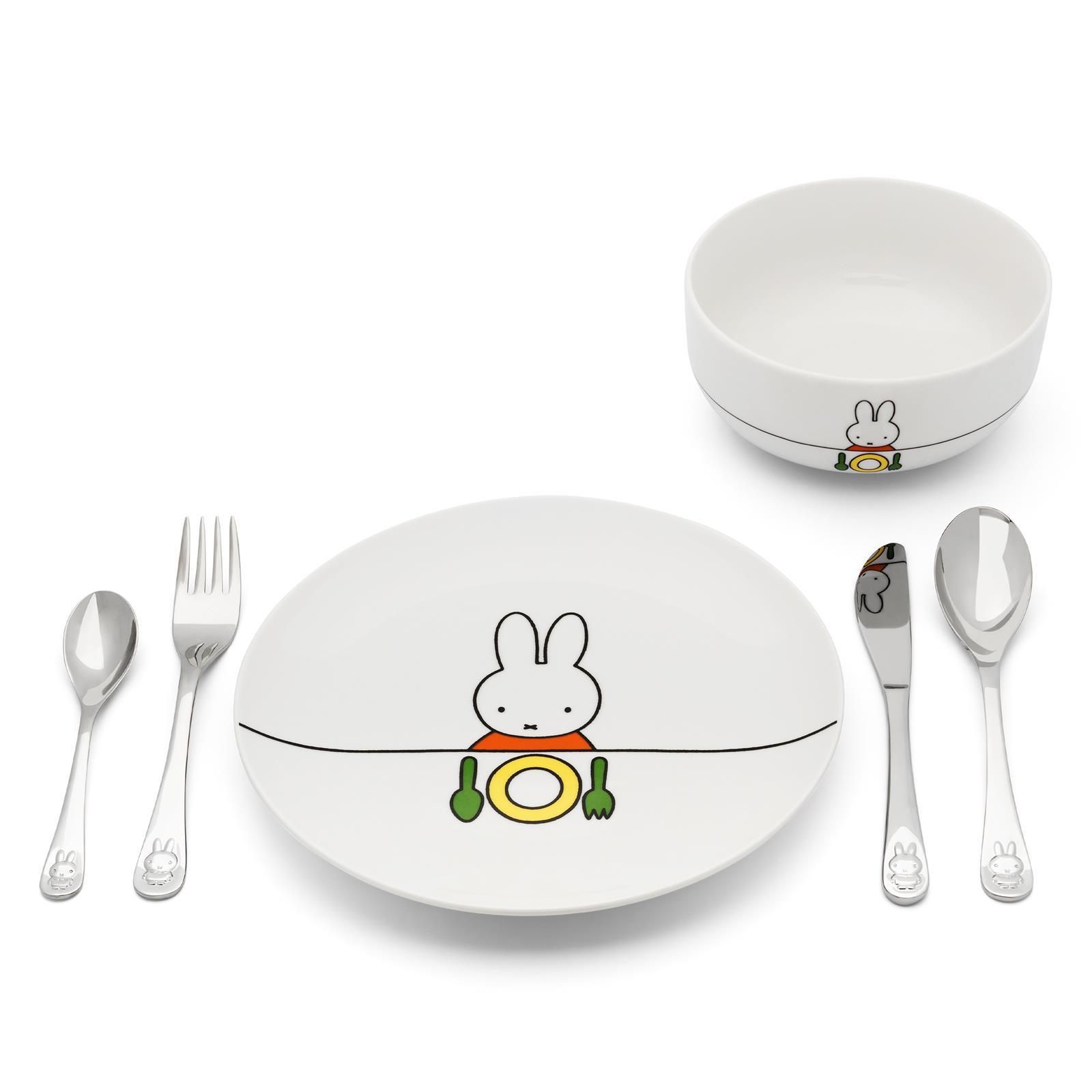 Zilverstad Kindergeschirr Set 6-tlg Porzellan Essgeschirr Teller Schüssel Edelstahl Besteck