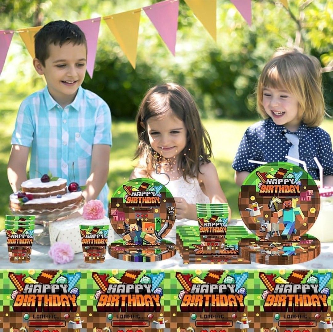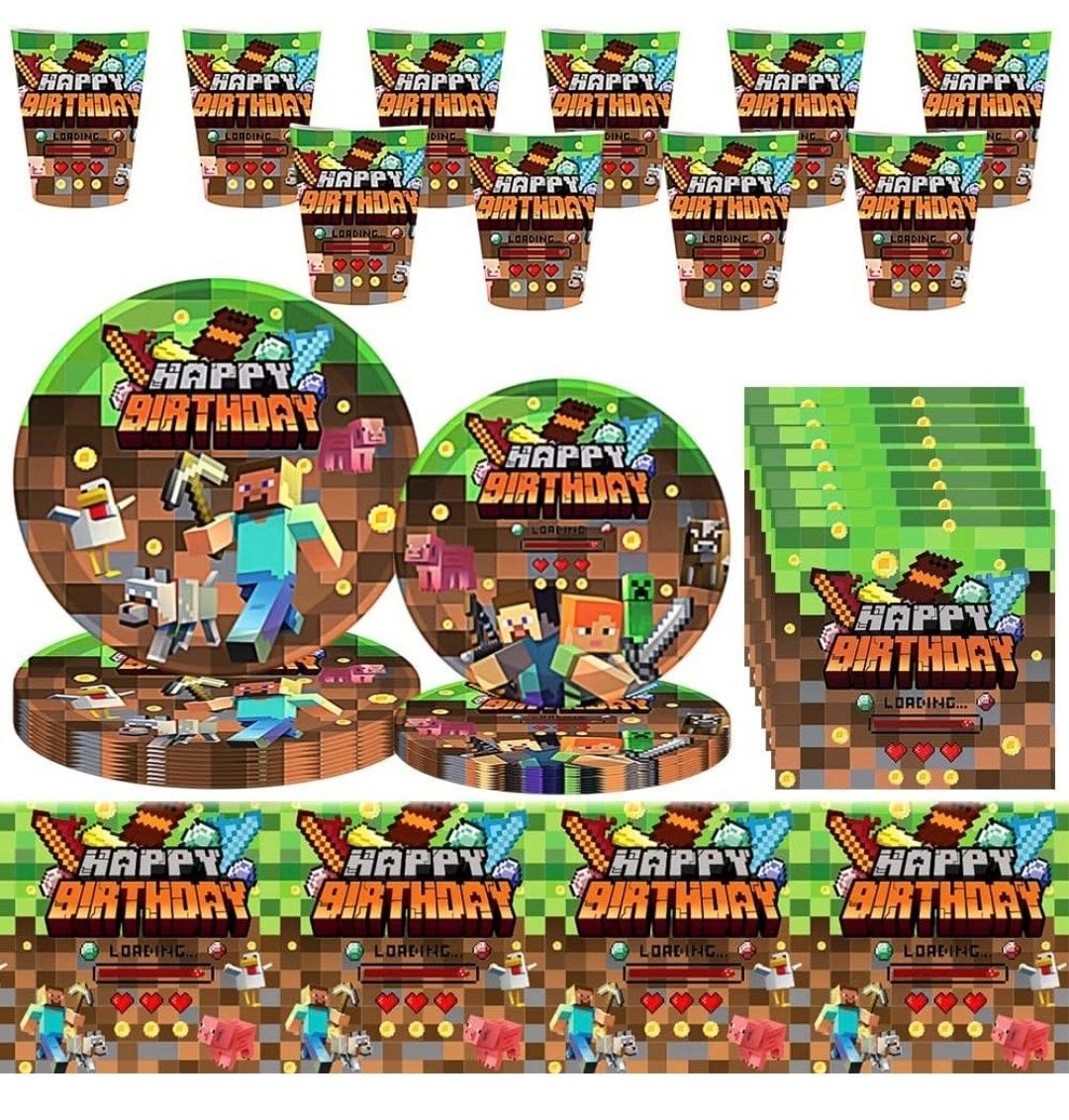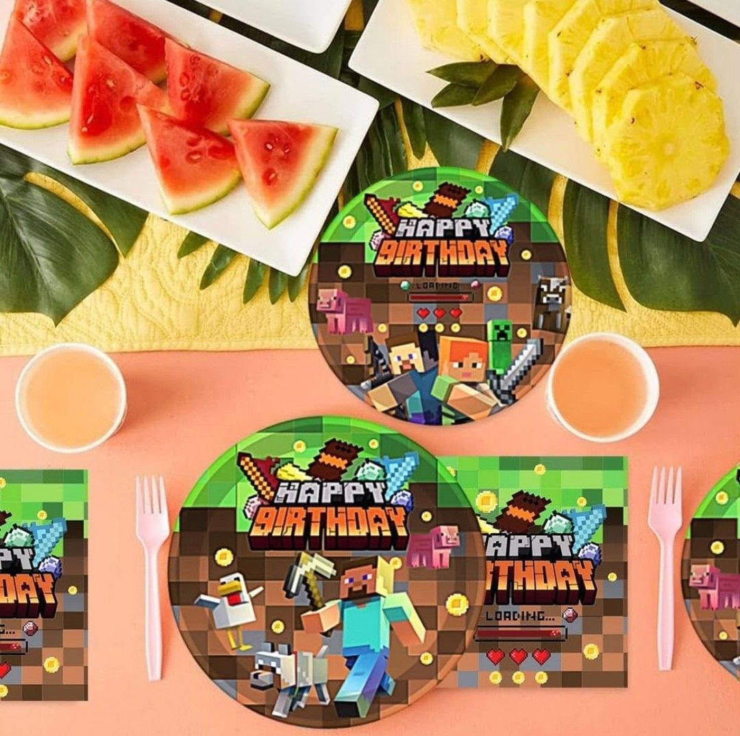 Kindergeschirr-Set Minecraft Party Deko Set 10 Gäste Gaming Teller Geburtstag Kinder