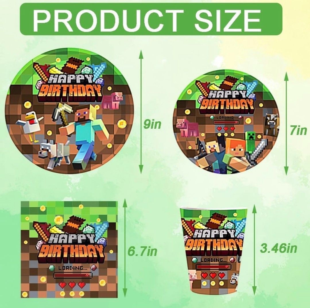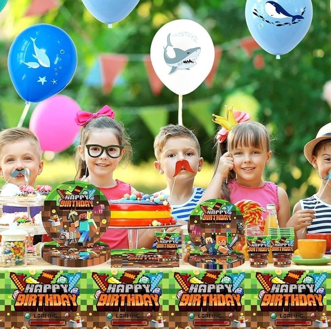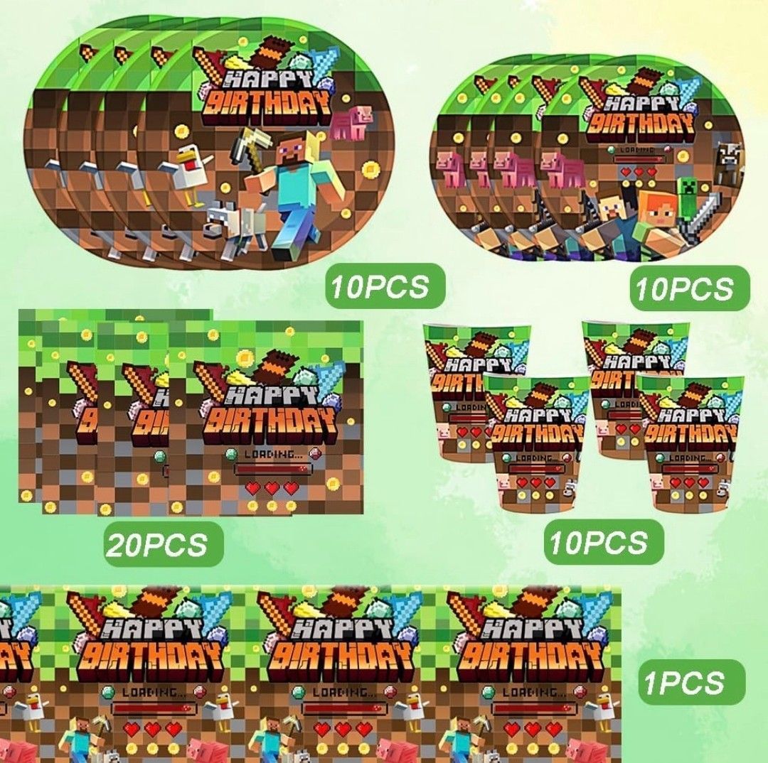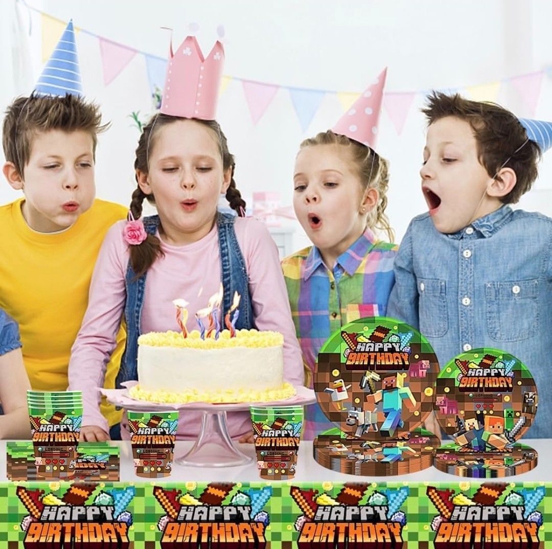 Kindergeschirr-Set Minecraft Party Deko Set 10 Gäste Gaming Teller Geburtstag Kinder