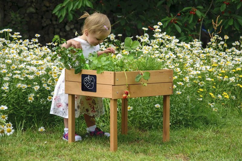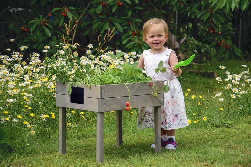 Dobar Kinderhochbeet mit Kreidetafel, Pflanzkasten, Kräutergarten, braun : braun