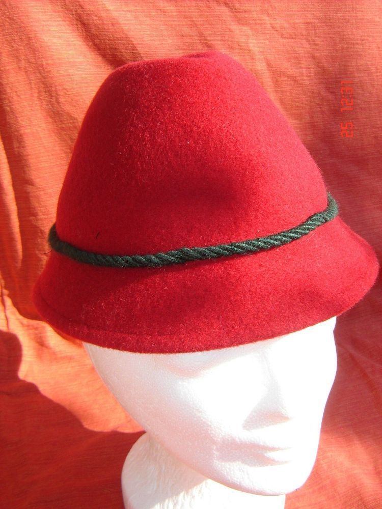 . frecher Kinderhut aus wetterfestem 100% Wollfilz in Farbe rot typischer kleiner Sepplhut zur Lederhose, aus eigener Fertigung sehr schön verarbeitet mit Baumwoll Innenband mit grüner Wollkordel lieferbar in Größe 47 , 48 , 49 , 50 oder 51 cm Kopfumfang weitere Größen auf Anfrage Bitte nach Kauf en