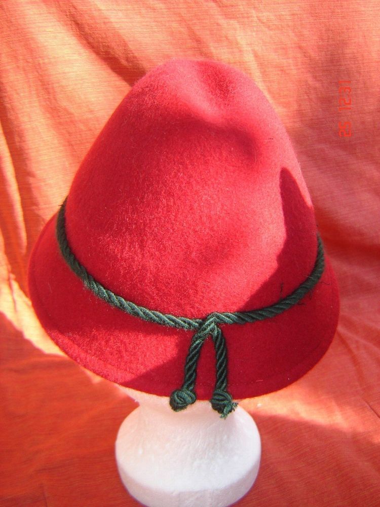 Kinderhut Trachtenhut Sepplhut Wollfilz rot wetterfest Kordel grün p
