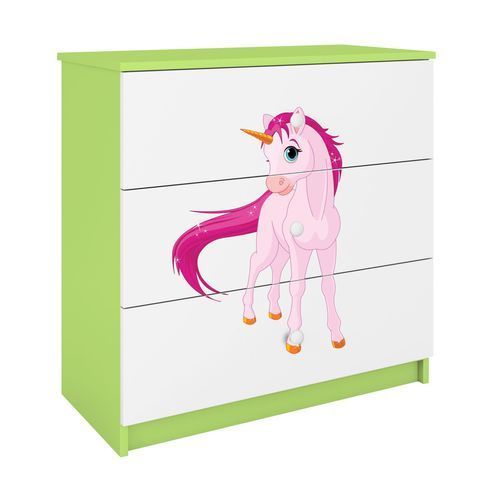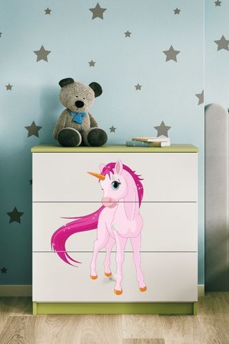 Kinderkommode mit Schubladen Einhorn in der Farbe Grün Babydreams