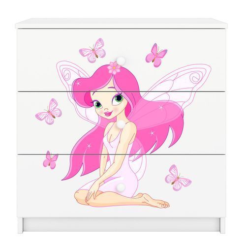 Kinderkommode mit Schubladen Elfe mit Schmetterlingen in der Farbe Weiß Babydreams