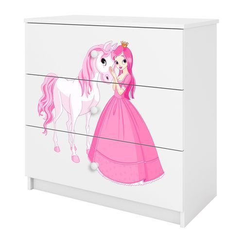 Kinderkommode mit Schubladen Prinzessin Pferd in der Farbe Weiß Babydreams
