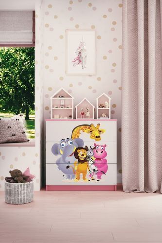 Kinderkommode mit Schubladen ZOO in der Farbe Rosa Babydreams