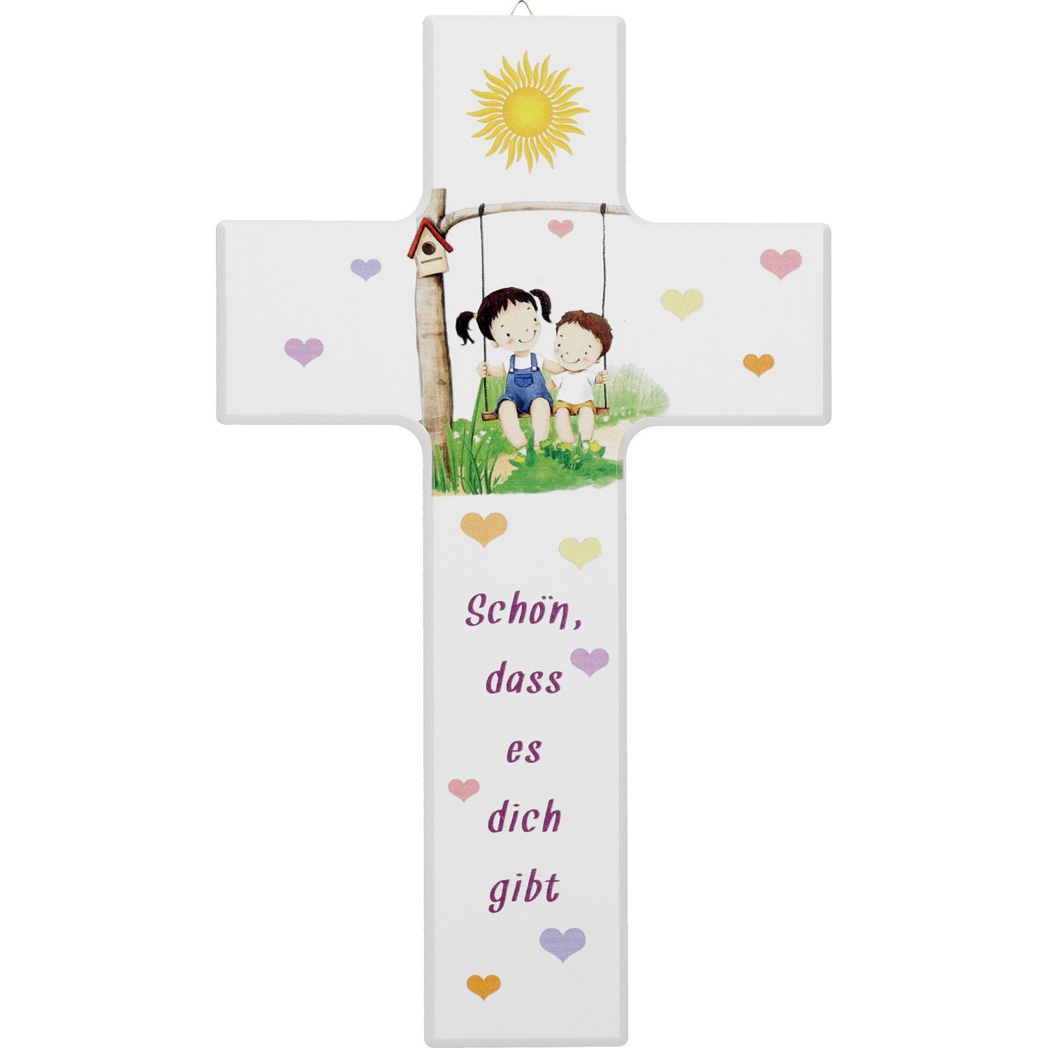 Kinderkreuz Holz, weiß, Schön dass es dich gibt