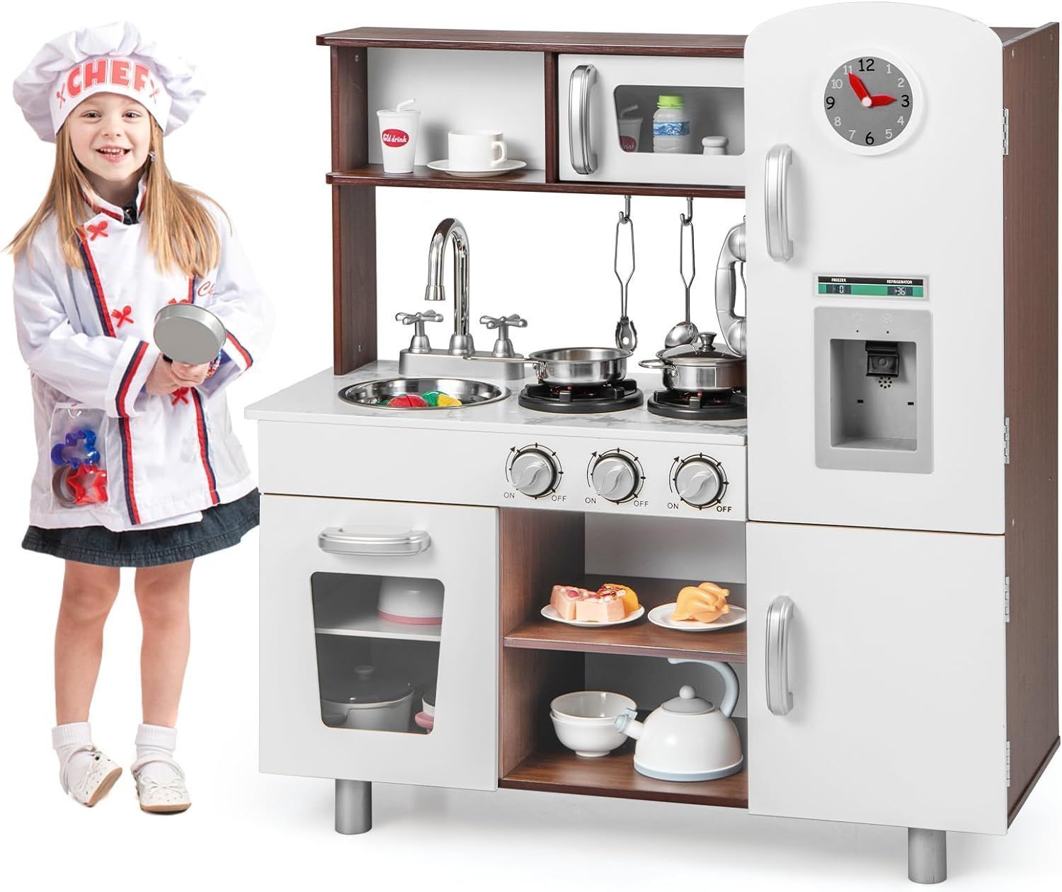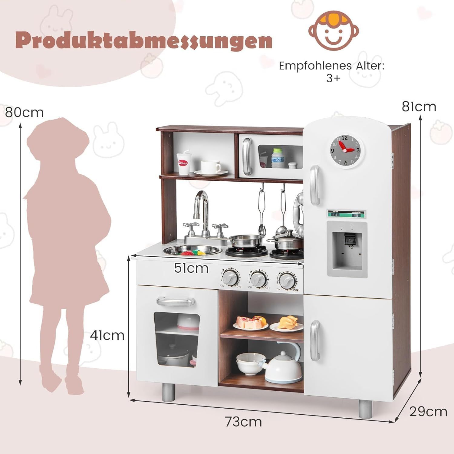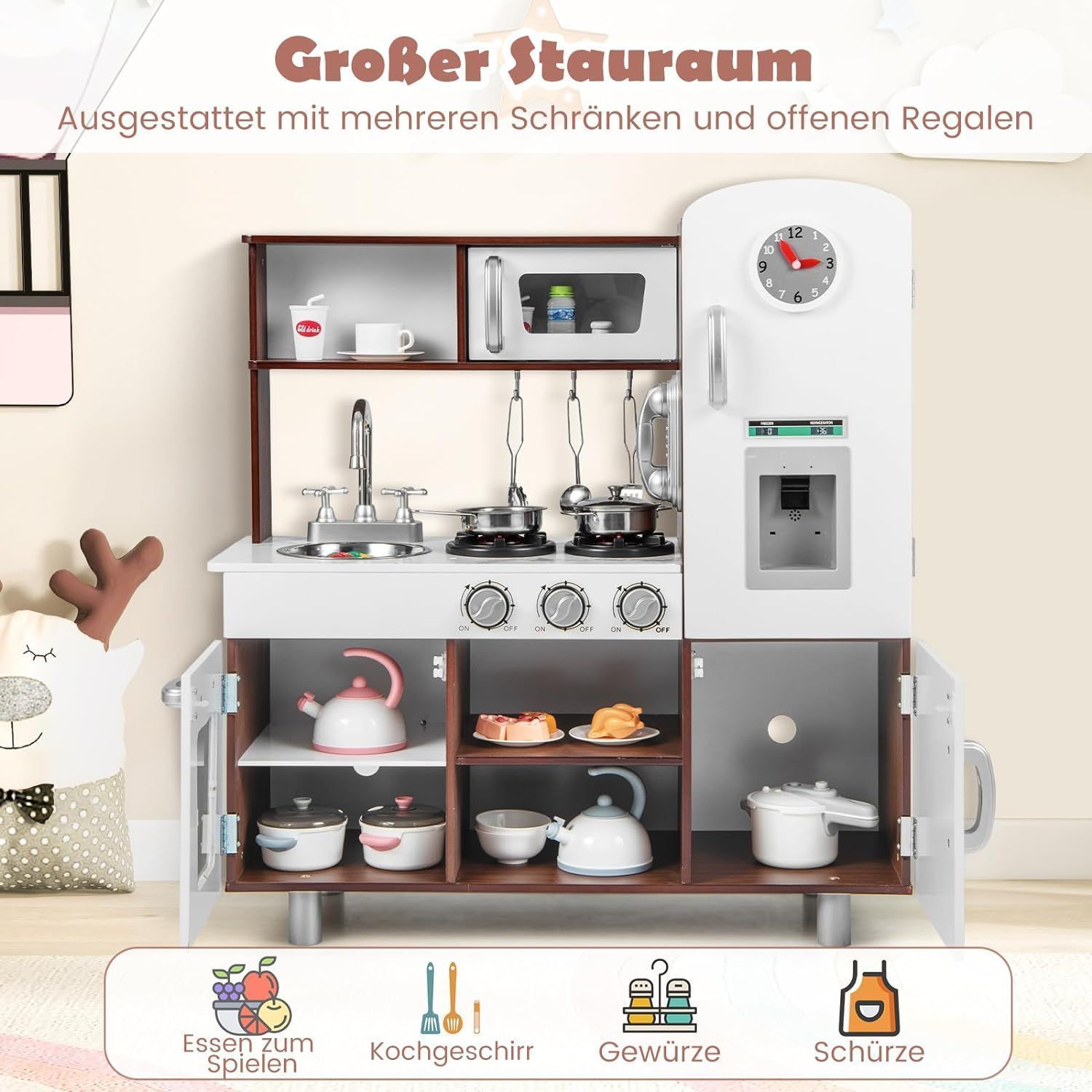 Kinderküche Holz, Spielküche mit Licht und Sound, Spielküchenset mit Herd, Mikrowe