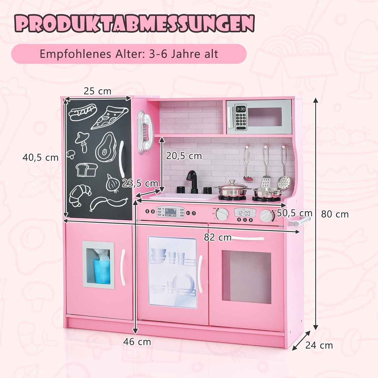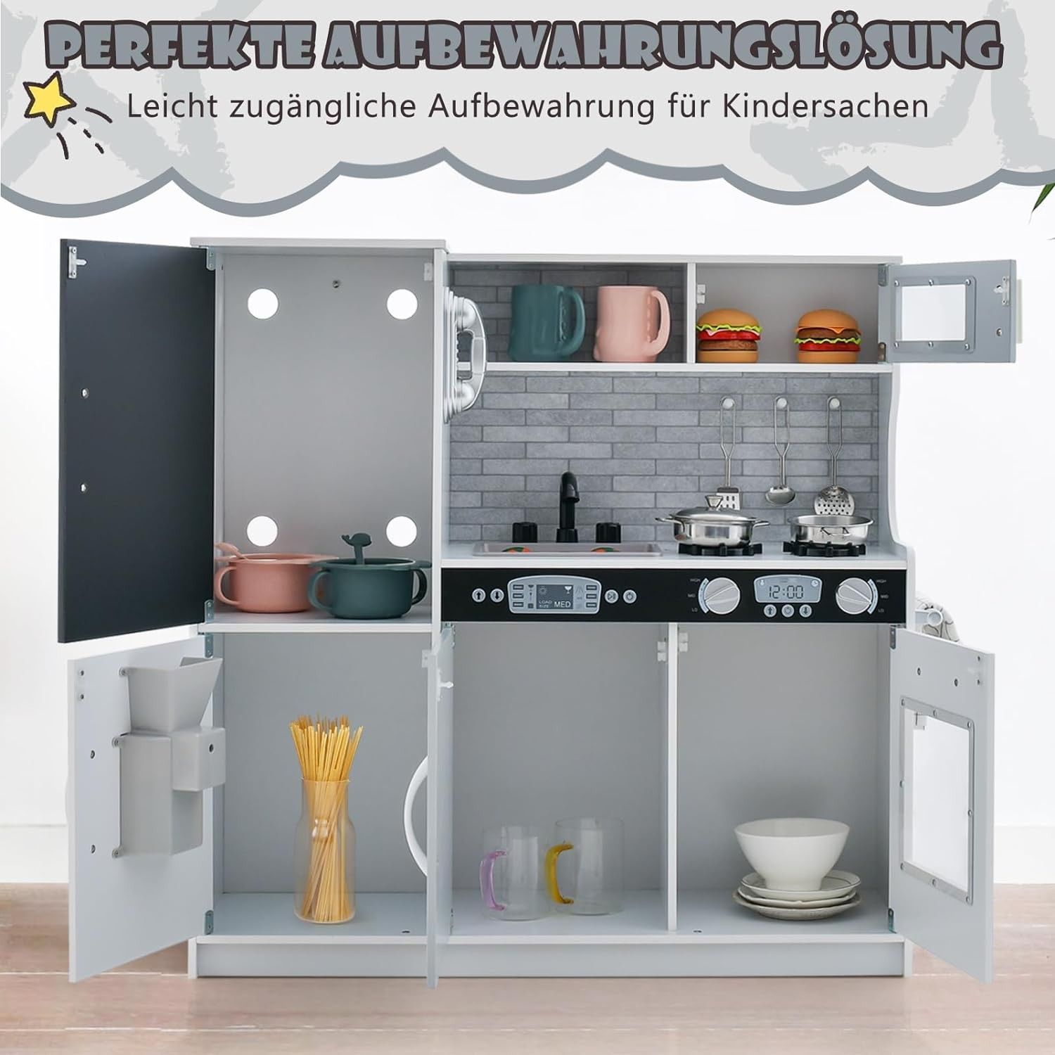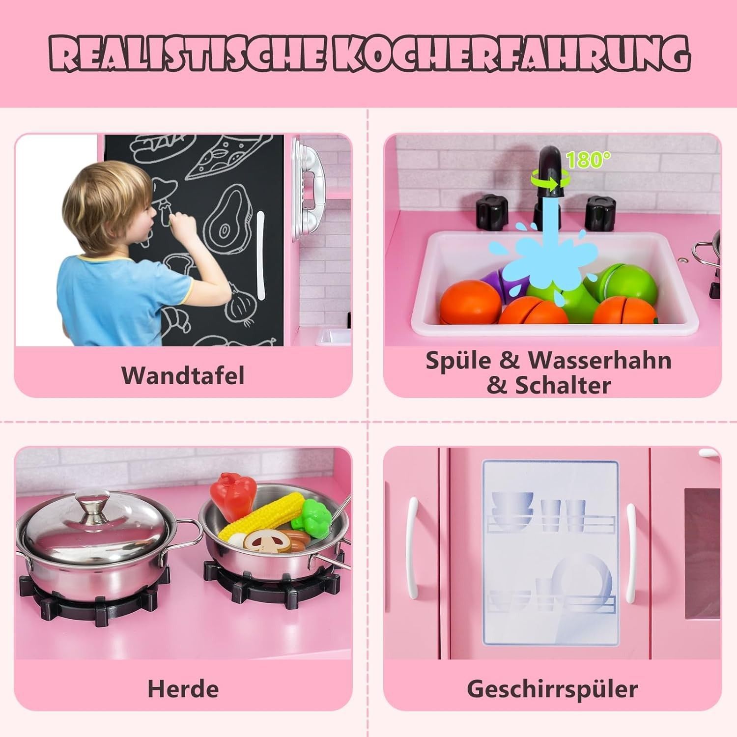 Kinderküche mit 10 Spielzubehör, Spielküche Kinder mit Tafel, Spielzeugküche